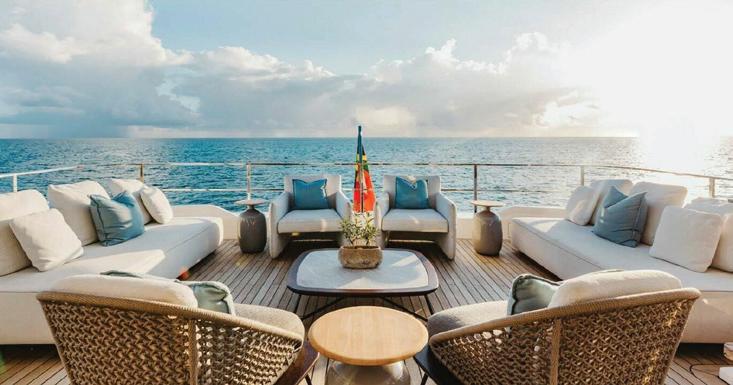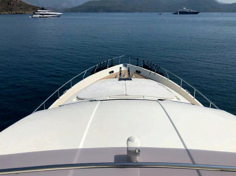 Accommodating up to 10 guests, the yacht features a luxurious master cabin amidships with large windows, a double bed, and an ensuite bathroom. The VIP cabin at the bow also includes a double bed and ensuite, while two twin guest cabins with ensuite bathrooms and Pullman berths complete the accommodations.