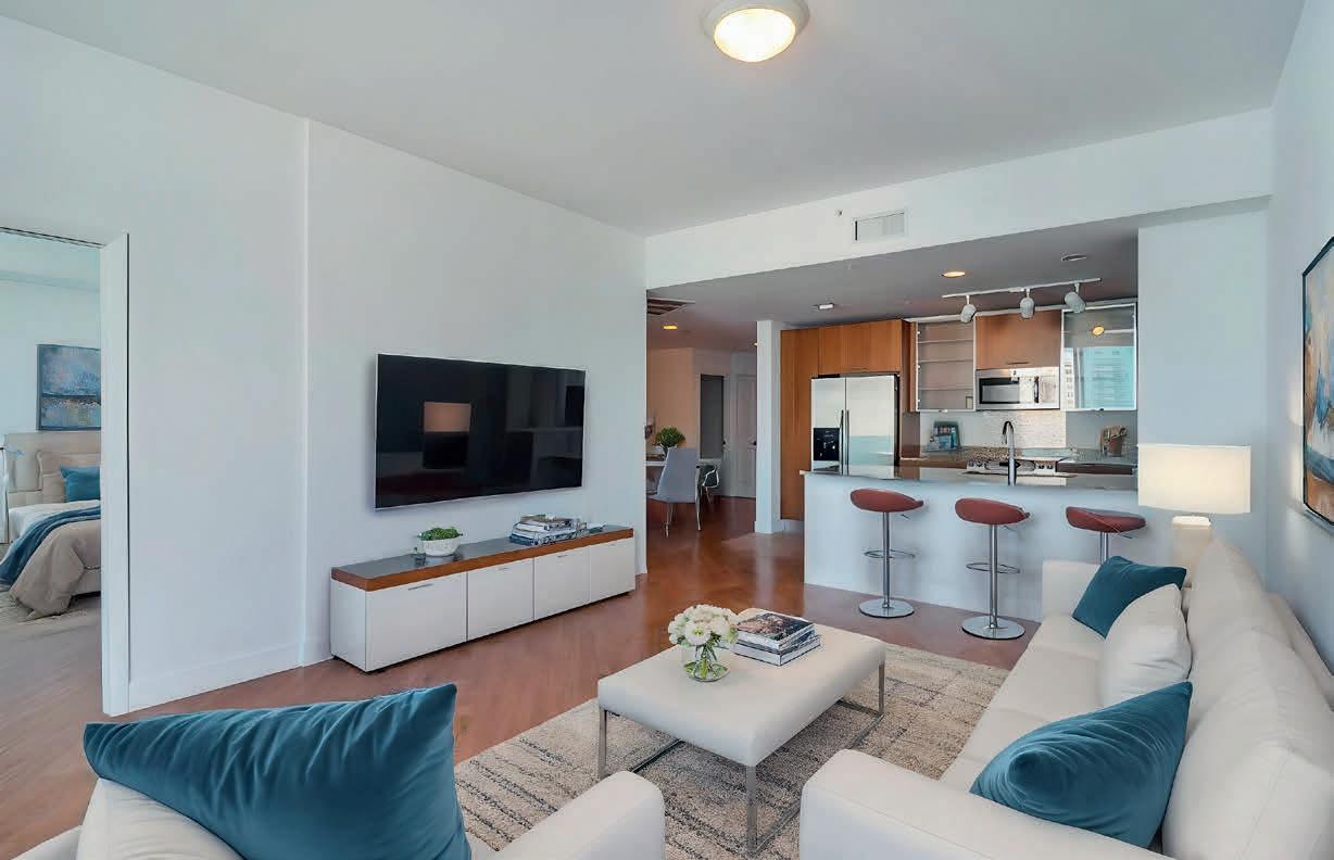 Welcome to your dream oasis! This gorgeous one-bedroom, one-anda-half-bathroom corner unit offers an unparalleled living experience with unobstructed views of the ocean, park, and bay. The open-concept layout features soaring high ceilings that enhance the spacious feel, while abundant natural light floods the space. Enjoy the convenience of an in-unit washer and dryer, plus an assigned covered parking space for added ease. Perfectly located, this loft-style gem is ideal for those seeking a blend of comfort and luxury. Don’t miss your chance to own this slice of paradise—schedule a viewing today!