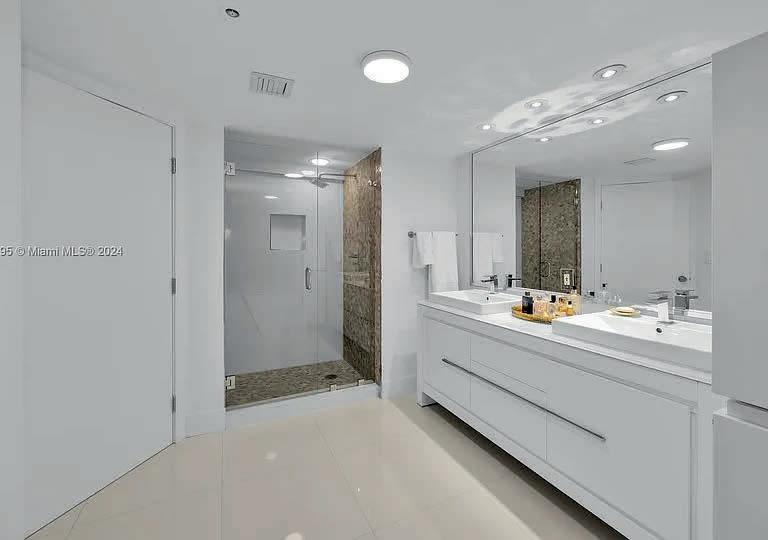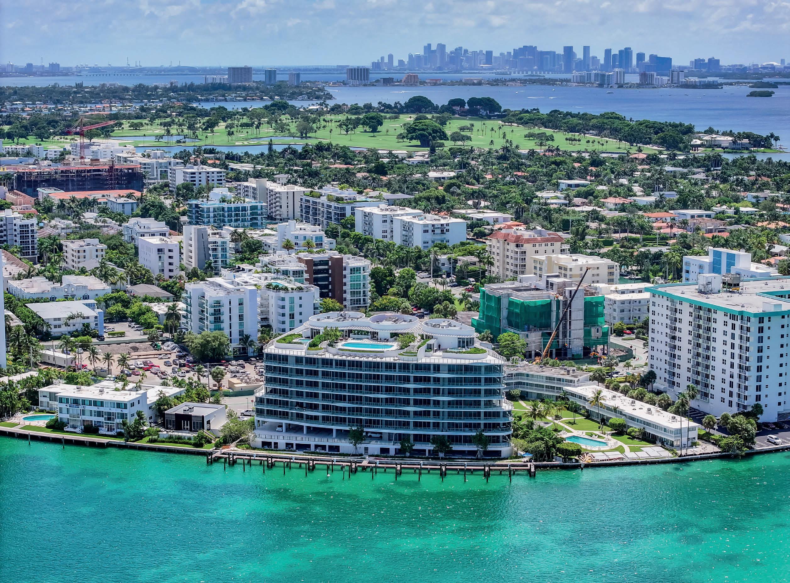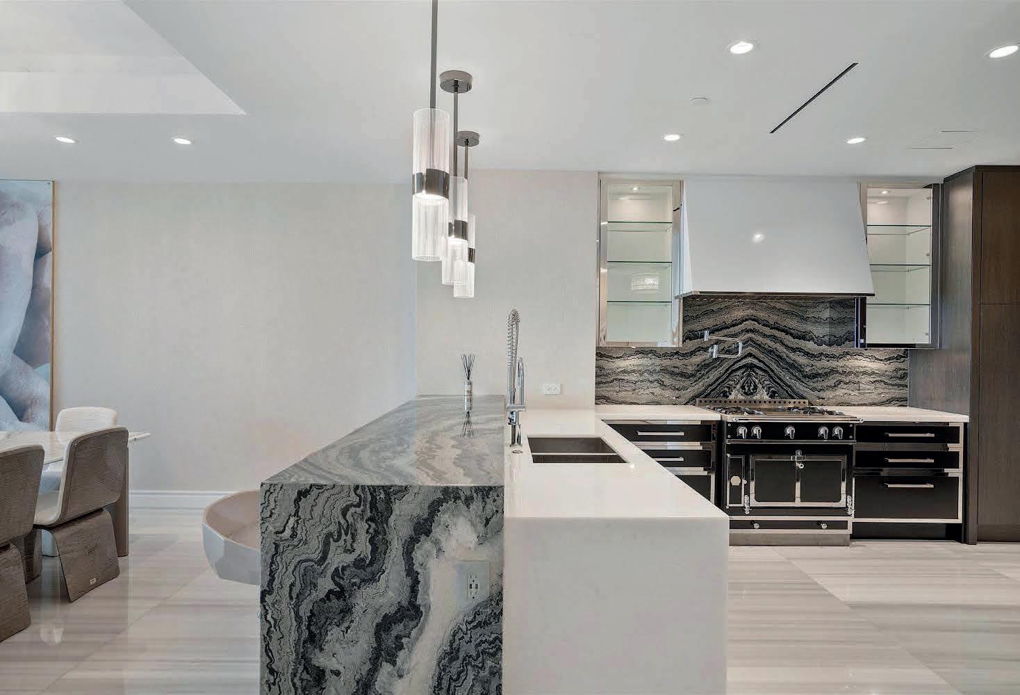 The open-concept design is thoughtfully tailored to provide privacy for guests or family members, with separate entrances for convenience. The primary suite features panoramic views of Biscayne Bay, a private dressing room, and a spa-inspired bath.
