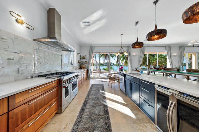 Recently renovated, the estate boasts fresh paint, modern lighting, designer furniture, and a chef-style kitchen with high-end appliances. Outdoors, enjoy a sparkling pool, an outdoor bathroom, three private docks—including a jet dock—and a boat launch.