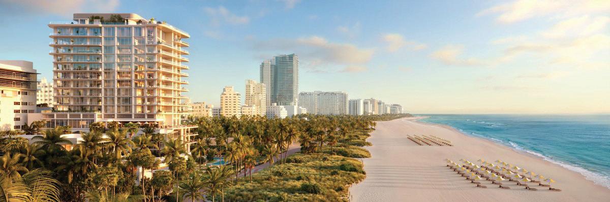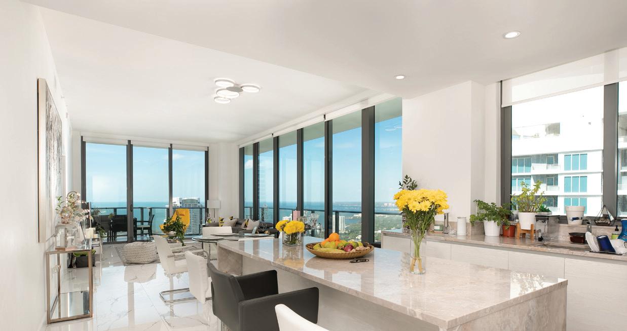Each unit integrates seamless indoor and outdoor living, with highlights such as wraparound terraces, open-air kitchens, private elevator access, and expansive floor-toceiling windows that offer sweeping views of the Miami Beach skyline and the Atlantic Ocean.
