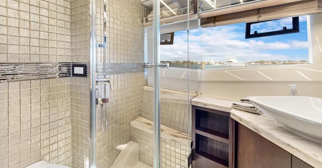 Accommodating up to 10 guests, the yacht features a luxurious master cabin amidships with large windows, a double bed, and an ensuite bathroom. The VIP cabin at the bow also includes a double bed and ensuite, while two twin guest cabins with ensuite bathrooms and Pullman berths complete the accommodations.
