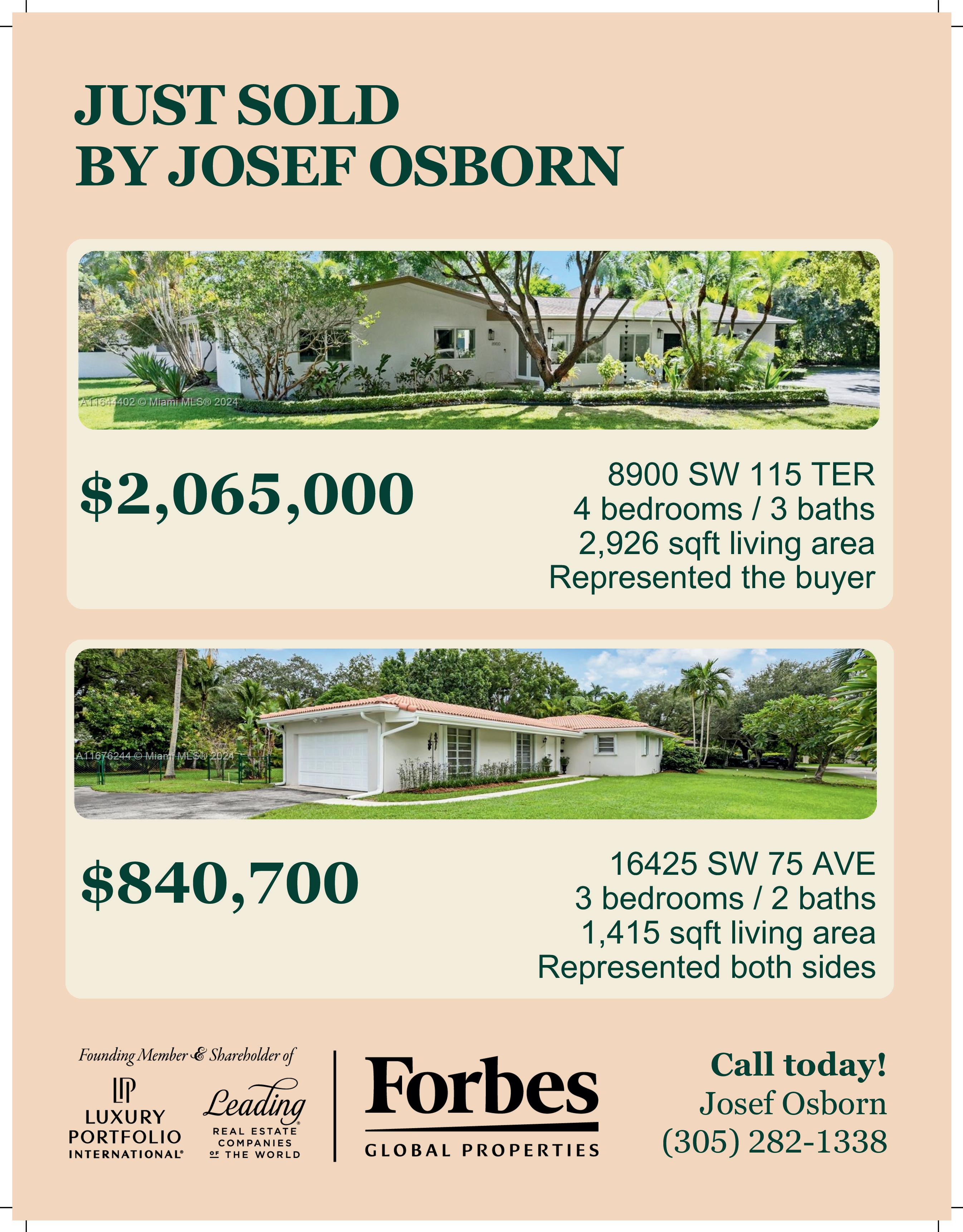 Family-owned and operated since 2011, we are dedicated to serving Miami, Fort Lauderdale, and West Palm Beach with professionalism, integrity, and a commitment to excellence. With a combined 30 years of experience, we bring a powerful blend of analytical expertise, deep market knowledge, and a personal touch to every transaction.