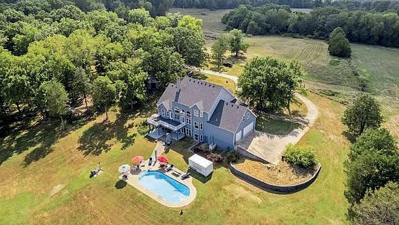 Now offering 30+ acres of land with this stunning modern retreat, located just minutes from Mark Twain Lake in Perry, MO. This exceptional full masonry home backs to Lick Creek that flows to Mark Twain Lake, offering privacy, natural beauty, and abundant outdoor recreation. The open-concept modern retreat main floor features vaulted ceilings, 9 foot ceilings, Anderson windows, builders upgrades throughout with upgraded hard surface floors, and plenty of natural light. The chef’s kitchen boasts custom cabinetry, quartz countertops, and upgraded stainless steel appliances and a large center island— perfect for entertaining or family meals. The spacious primary suite is a serene escape, complete with a full bathroom featuring numerous builder upgrades. The home is complemented by two additional bedrooms, an office, and a sportsman’s closet. With 2.5 baths and a massive 4 car garage, this home balances comfort and functionality. Outdoor living includes a cozy patio and a large covered patio attached to a 40x60 partial masonry machine shop—ideal for storage, hobbies, or a home-based business. Full basement provides energy efficiency HVAC system and a bonus forced air wood furnace. This versatile property is perfect as a country estate, hobby farm, or weekend getaway. Don’t miss this rare opportunity to own a stylish, spacious retreat with endless potential near Mark Twain Lake. Seller may be willing to sell additional acres with purchase of property. (previously listed as 3 acres)