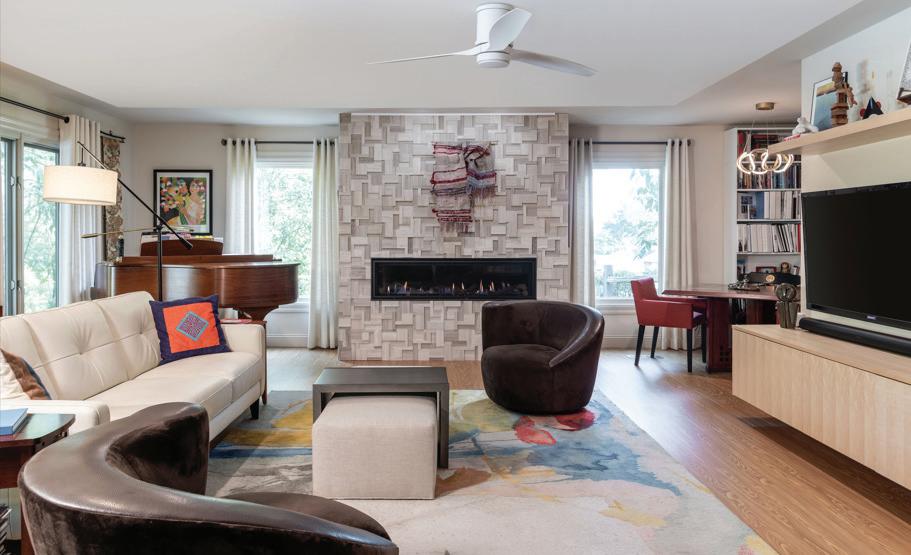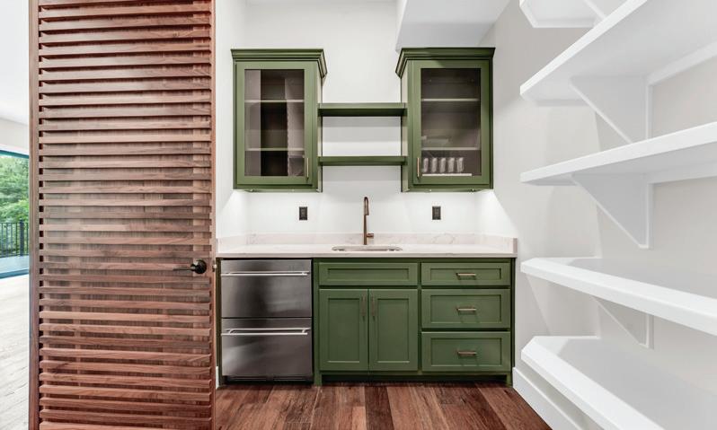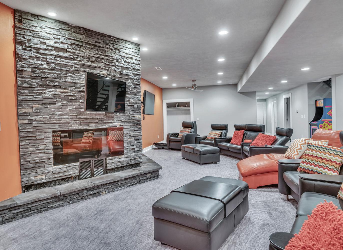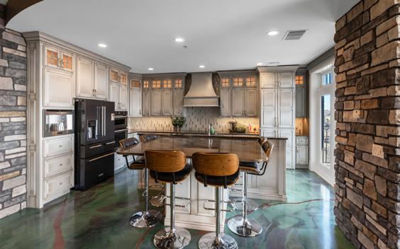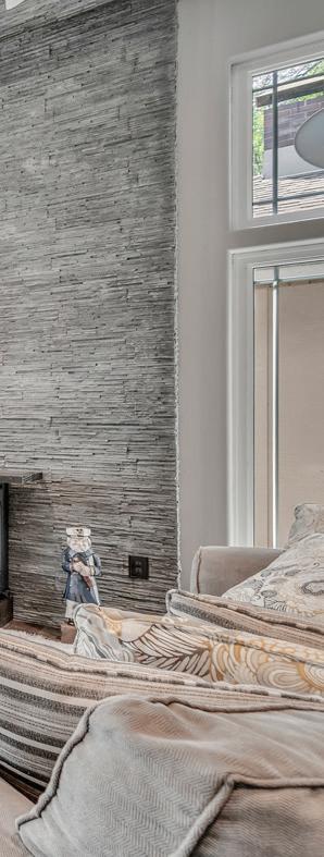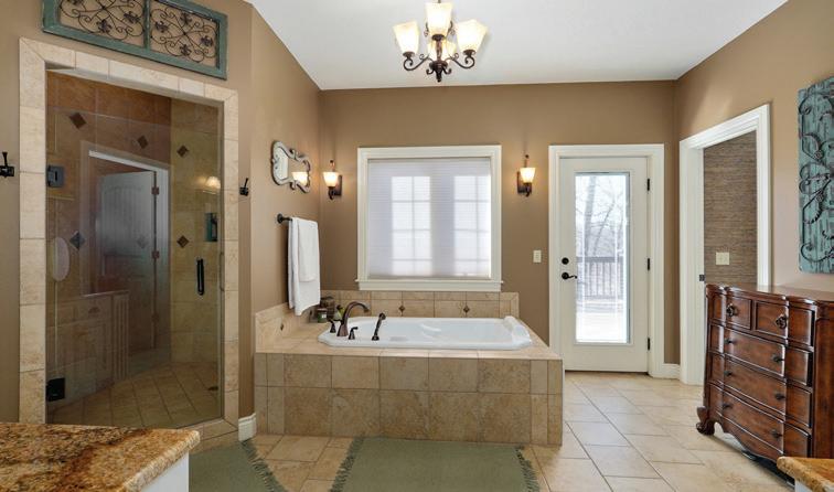en-suite includes a double sided fireplace, dual vanities, a walk in shower, and a jetted tub. Two bedrooms share a jack and jill bathroom and the other bedroom features its own en suite. A second staircase from the second level allows quick access to the family room and kitchen area. Moving to the lower level, you’ll find an additional living room with a custom built-in entertainment system, bar with kitchenette, and a temperature controlled wine room, a full bathroom with a tiled walk-in shower, den, and storage space. This space provides great opportunities to incorporate a fitness studio, a hobby space or rec room. Two separate staircases accessing this lower level provide added convenience. Exterior amenities include an attached oversized side load four stall garage with a built-in locker system and ample storage, mature landscaping, irrigation system and a park like private backyard. Additional amenities include a Lutron light system, sound system, central vac, professionally designed and decorated fixtures and appointments throughout, multiple fireplaces, and much more. This kind of opportunity is a rare find. Don’t miss it!