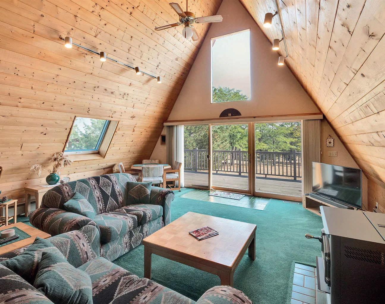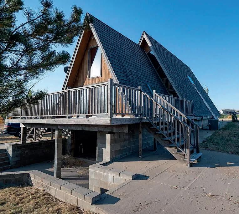 Take a look at the view from this fully furnished retro style A-frame on the South side of Lake McConaughy! The house features a primary bedroom on the upper loft level along with office space. The main level offers an open concept eat-in kitchen and living space, along with two bedrooms and a bathroom. You can also hang out in the walk-out basement entertainment space, which is equipped with a pool table, a bathroom, and plenty of storage. Make an appointment to see this stylish throwback today!