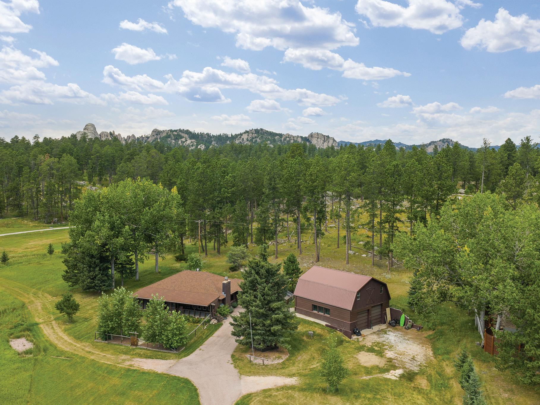 STOP in the Name of LOVE! If you let this one pass you by, it just might break your heart. Tucked away at the peaceful end of a winding country lane, wrapped in whispering pines and dramatic granite outcroppings, this 12+ acre Black Hills retreat feels like your own secret escape. It’s a place where nature hums in the background, space feels endless, and every corner is brimming with possibility. The main home is ready for your vision, offering six bedrooms, three baths, and a dedicated office space perfect for working remotely or creating your own private hideaway. The upper level is nearly finished, while the main level is a blank canvas, waiting for your personal touch. Just a short stroll away, a big pole barn is ready to store all your toys, tools, and treasures. Not far from the main home sits a charming 2007 double-wide with three bedrooms and two baths. With its open, welcoming floor plan, it’s perfect for living comfortably while finishing your dream home-or for welcoming guests or renters. The third home needs some TLC but carries all the potential to become a sweet guest cottage, a rental, or your next creative project. And oh, the natural beauty here! Bismarck Creek meanders through the property, bringing the soothing sound of running water and the joy of spotting wildlife. A natural spring at the back adds a touch of magic, and there’s plenty of room for your happy cluckers, so bring the chickens! Don’t forget the bunk house, either-it’s perfect for a he-shed, she-shed, or hobby haven to keep your passions alive without cluttering the main home. This is more than a property-it’s a story waiting to be written, a homestead in the making, a dream for those craving space, peace, and endless opportunities. If you’ve been waiting for “the one,” you just found it.