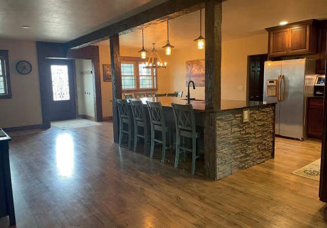 Do not miss this opportunity! Excellent development location, Plus a homestead! The free flowing artesian well services the livestock and keeps the heated shop an even 65 degrees year round! You can choose to kick on the furnace if you’d like but otherwise its free moving through out a zoned grid system! This family home is cozy, well cared for, and uses WEB water! Directly across from the Brown County Fairgrounds you could even rent space for campers! So many possibilities here! With all the outbuildings and current set up you could also have a little livestock! Dreamers delight out here! Call your agent today for more information! 3155 S
