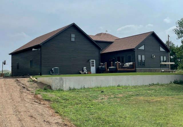 Call Falina Selchert with Real Broker of the Black Hills at 605-759-0808 to schedule your tour of this incredible 6.45-acre property with direct Bear Butte views. The sellers are heartbroken to let this dream home go, Their loss is your gain. This newly built home offers 6 bedrooms, 3.5 bathrooms, right at 4,500 finished square feet. Designed with quality in mind, you’ll find vaulted ceilings with exposed beams, quartz countertops, Pella fiberglass windows, and sound-insulated walls throughout. The main kitchen is a showstopper with a farmhouse sink, double oven, 5-burner stovetop, and walk-in pantry. A second full kitchen in the basement plus 2 laundry rooms makes this home perfect for multi-generational living. Cozy up by one of the two Napoleon fireplaces or retreat to the safe room with a Fort Knox door. Outdoor living shines with a structural steel deck, vaulted roof, and concrete patios. The insulated and heated 850 SF garage features floor drains, hot/cold spigots, and natural gas hookups. The 2,560 SF barn is equally impressive with four overhead doors, PVC panel ceiling, natural gas heater, plumbing for bath/wet bar, and trench drains. Utilities include natural gas, fiber optic internet, cistern, septic, and an upgraded water softener. This property is move-in ready with new gravel drive, French drain, and landscaping. Don’t let this overbuilt dream home pass you by.