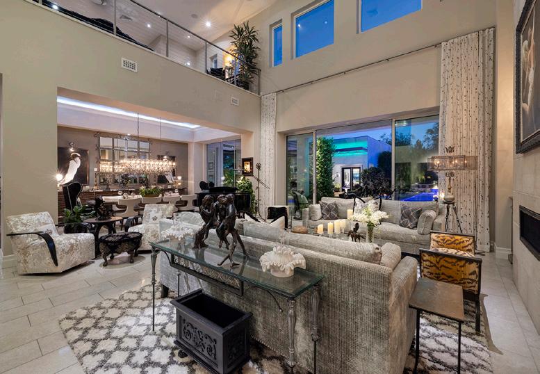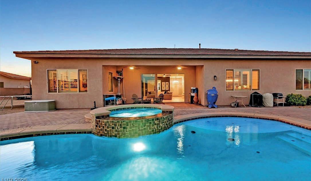 • Home 2: Designed to live like a single story, this spacious residence features the primary suite and two bedrooms on the main floor, plus a large loft, office/exercise room, and one additional bedroom upstairs. A 700 sq ft covered patio captures sweeping views of Downtown Las Vegas, the Strip, and nearby mountains. Estimated completion: February 2026.