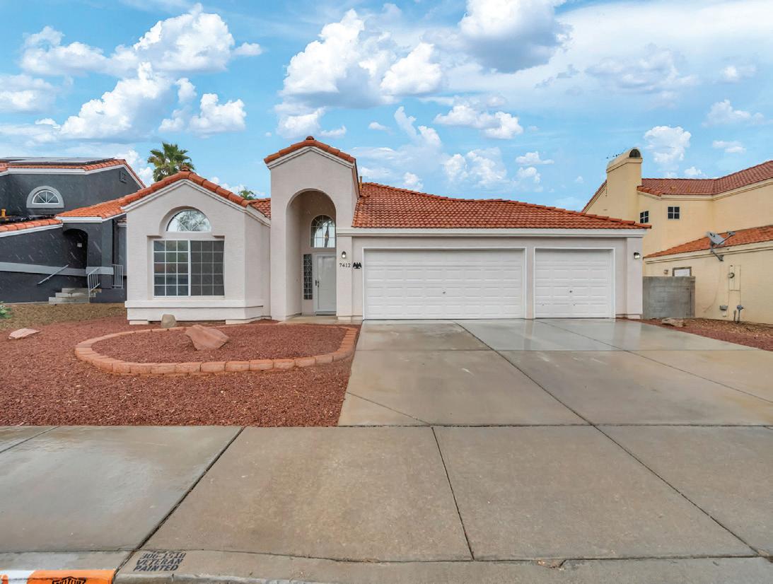 Peaceful gated community with easy access to everything. Freshly painted 2 bedroom, 2 bath, 2 car garage home that’s ready for it’s next owner. The kitchen has a built-in microwave, island, refrigerator and is open to the living room/greatroom. Walk in closet in the primary suite, paver patio, easy to maintain yard and a cul-de-sac location. Minutes to Veterans Parkway/McCarran, restaurants, and shopping. 8900