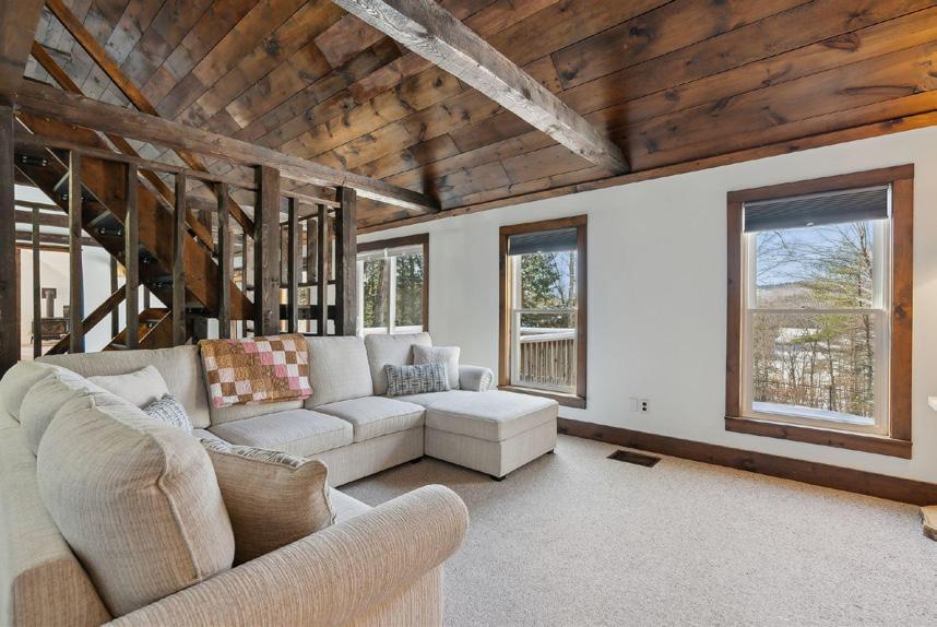 Incredible opportunity for ON-Mountain living. 2 minute walk to lifts and easily walkable to the village. The views are some of the best you can find on mountain. This 3 level cabin style townhome is hard to believe. Completely renovated in 20004 with hickory kitchen and family room cabinets, granite counters, and stainless appliances. This is the coziest space to relax and enjoy the Sugarloaf lifestyle. There are two spacious bedrooms and a full bath on level one. The primary suite is on level three with complete privacy. Come and get LOAFED! (Broker owned).