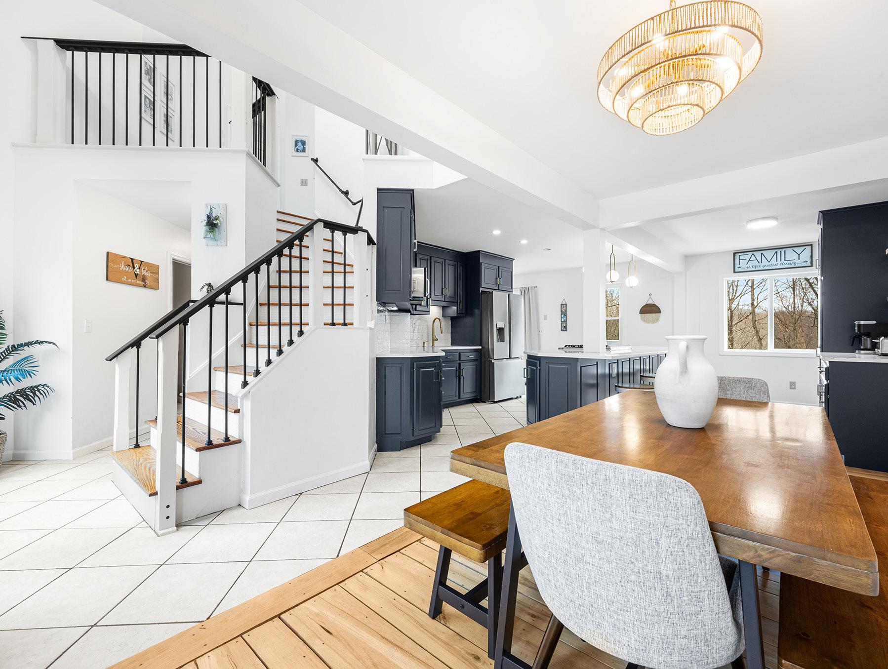 3 BD | 4 BA | 4,100 SQFT | $777,000 Stunning contemporary home with classic elegance. This home blends design with timeless charm. Grand entry way with soaring vaulted ceiling creates an inviting first impression. The open first level floor plan flows into a spacious kitchen, dining room and great room perfect for entertaining. The kitchen features custom cabinetry, honed granite countertops, and top of the line stainless steel appliances including a double convection oven built in refrigerator and premium Viking stove. Hardwood floors, intricate crown molding, high ceilings and welcoming stone hearths add warmth and sophistication throughout the home. Primary bedroom suite has a spa inspired bathroom complete with marble counter tops, jetted soaking tub, gas fireplace and chandelier. Additional features include private sauna, hot tub cover porch and deck for multiple places to unwind and enjoy the outdoors. A large bonus room over the 2 car garage provides a versatility for a home office, gym and/or media room. The lower level has a spacious room that can be a rec room, office or extra living room. With the large lot that has mature gardens and lush landscaping, this home offers views and access to wooded common land, ensuring both beauty and privacy. Approx 5 miles to Sugarloaf and all of the area trails! Schedule your private showing and see for yourself!
