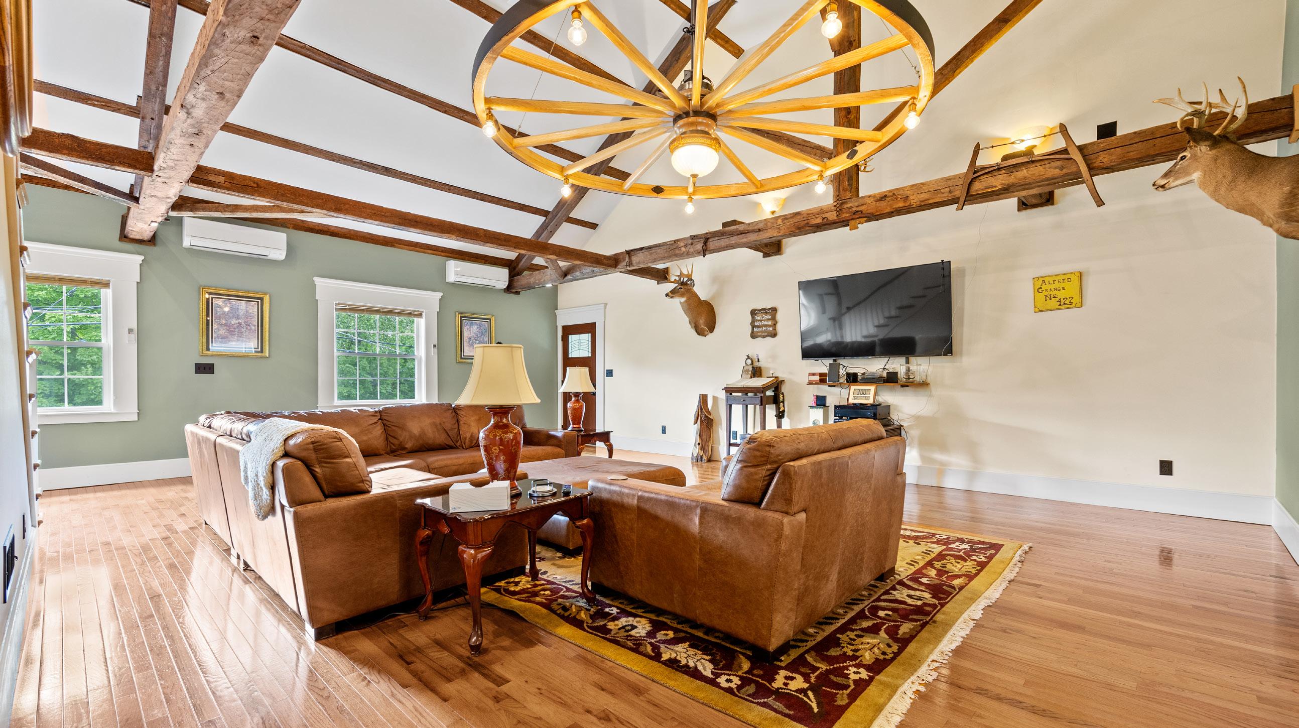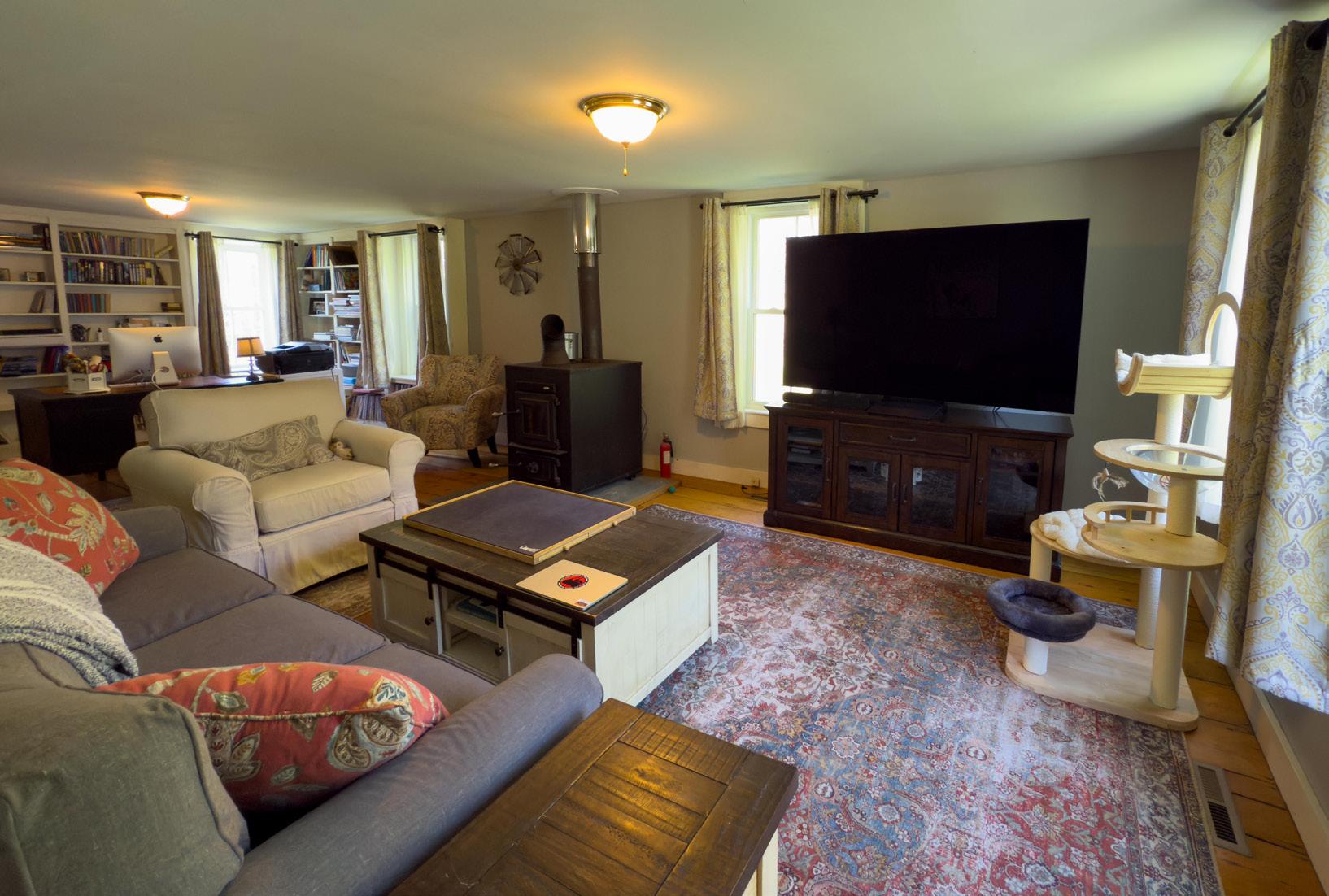 Inside, the heart of the home offers warmth and character—featuring 3 inviting bedrooms, 2 full baths, a cozy wood stove, and a distinctive modified A-frame design with dual chimneys. Every detail nods to the home’s 19th-century roots, while newer enhancements—including a high-efficiency propane furnace, new siding and roof, and an automatic Honeywell generator—bring peace of mind and year-round comfort.