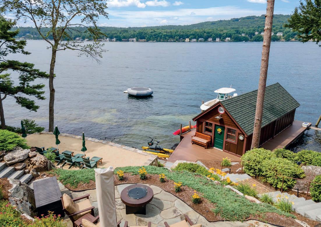 Indulge in the pinnacle of lakeside luxury on the coveted shores of Newfound Lake. This exceptional estate offers 100 feet of private beachfront, a custom dock, and breathtaking views of the lake and mountains. A heated driveway leads to both a detached three-car garage and an attached two-car garage, offering ample space to accommodate all your vehicle and storage needs. Inside, an elevator leads upstairs to an open-concept living space where sophistication meets effortless entertainment. The chef’s kitchen is a masterpiece with a substantial island, walk-in pantry, and designer finishes throughout. The great room features beautifully crafted ceilings, a stunning gas fireplace, and breathtaking views of the lake. The opulent primary suite features excellent lake views, an oversized en-suite bath with soaking tub, and an expansive dressing room. Retreat to the lowerlevel sanctuary—featuring a handcrafted 10-seat pub bar, state-of-the-art home theater, luxury bunk room, office, sauna, and large fitness suite. The lower level opens up to a flagstone terrace with a fire pit, perfect for sunset soirées or serene mornings by the water. A rare opportunity for unparalleled lakeside living, this property offers unmatched privacy, sophistication, and access to the pristine beauty of Newfound Lake.