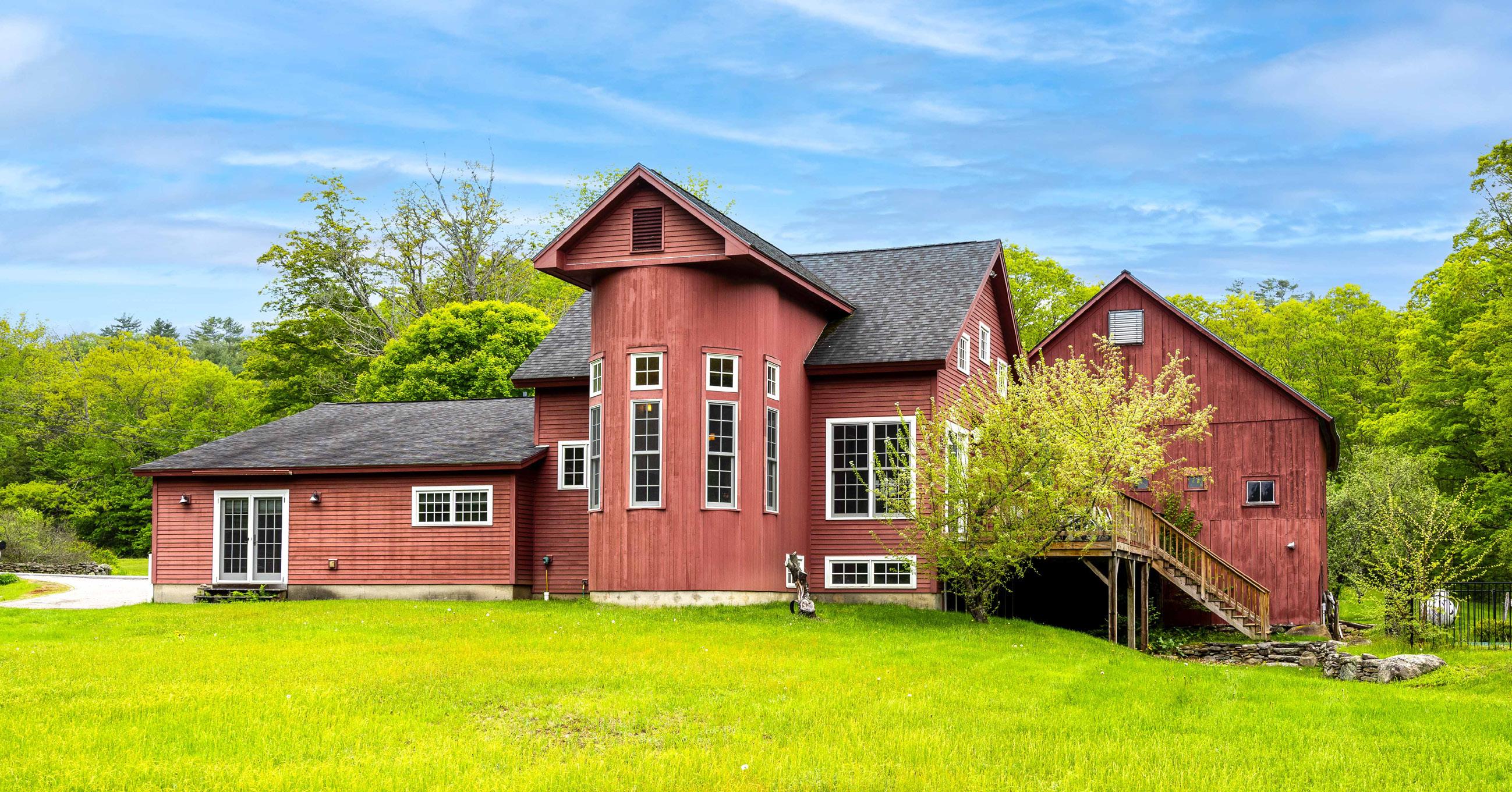 Idyllic retreat on 96 acres of rolling fields and woodlands o ers a seamless blend of peace and quiet, outdoor adventures, and comfortable living – just 80 miles from Boston and a few minutes from Pats Peak ski area. Three residences include a spectacular converted post and beam barn with soaring ceilings, huge fieldstone fireplace, 6 bedrooms & 7 baths; a farmhouse with 5 bedrooms, 3 baths; guest house with first floor en-suite bedroom- 3 bedrooms & 3 baths total. The old Valley Lodge from Pats Peak was moved to the property and has two large rooms, a bath and laundry. Additional features include a tennis/basketball court, a saline gunite pool, and a whole property generator.