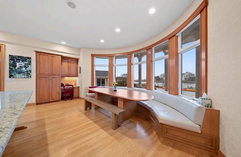 overlooking the outdoor patio, and a designer kitchen by renowned cabinet maker Ciuffo, equipped with Gaggenau appliances and a generously sized butler's pantry. A breakfast nook leads to intimate meals and extends onto the backyard patio with two