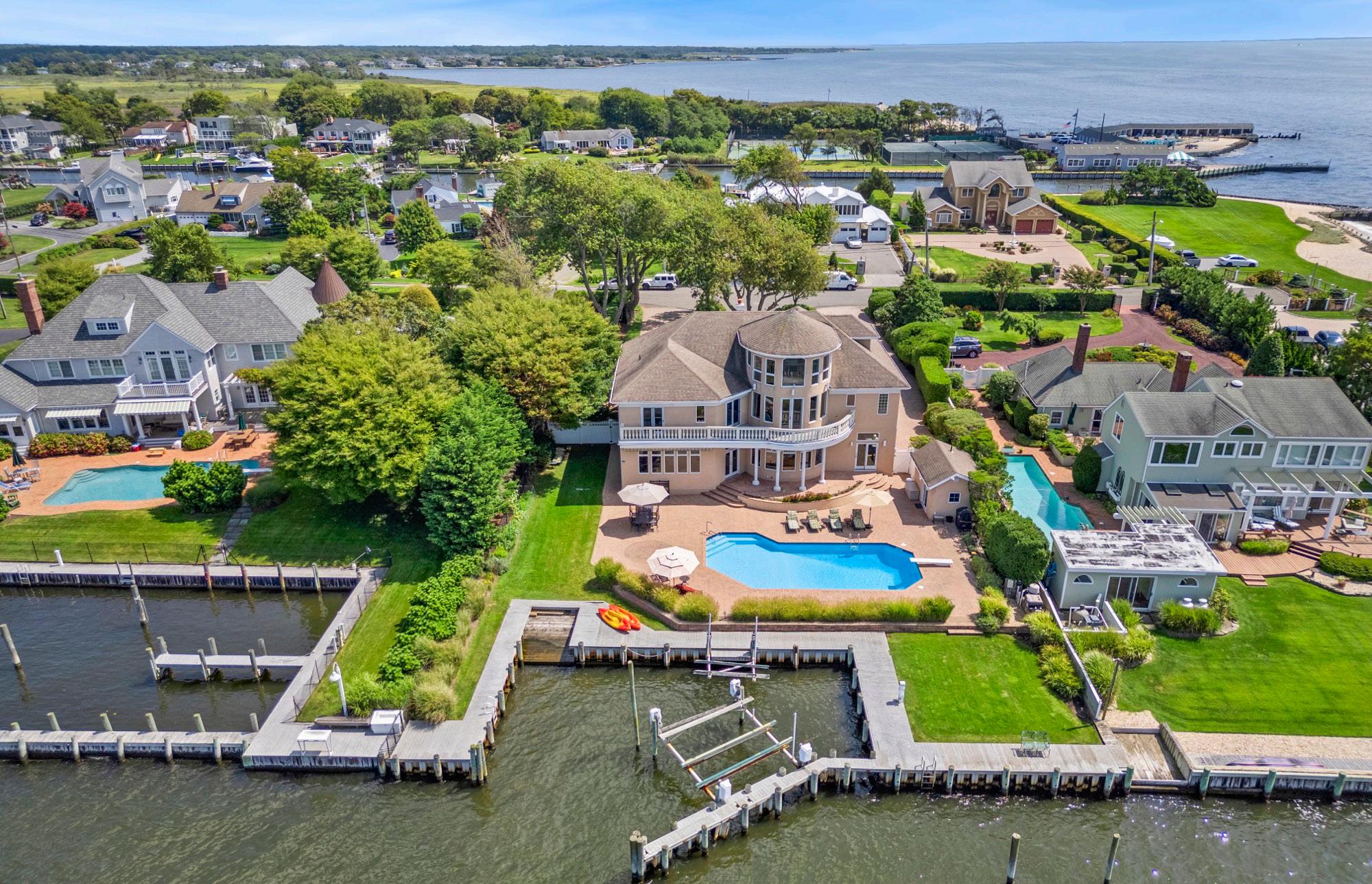 Step into a realm of pure Resort Style living and waterfront splendor within this newly designed Hamptons Bayfront masterpiece. Behind the estate gate, graciously situated on a serene and meticulously maintained 1.4 acres, ensconced by vibrant gardens and exquisite specimen plantings, this distinguished Bayfront residence finds its place along the illustrious Dune Road. Here, where luxury living meets the tranquil embrace of nature, a sanctuary of waterfront opulence awaits your discovery. Perfectly situated alongside the shimmering bay, with the prestigious Quogue Field Club and golf course views as a backdrop, this unique Hamptons residence not only offers the utmost privacy but also presents a front-row seat to captivating sunsets while playing host to numerous summer activities. The poolside deck and lounge unveil a personal theater for nature's nightly spectacle-a symphony of colors gracefully dancing across the Hamptons skyline. Sitting bayside and center stage is the heated Gunite pool, wrapped in its spacious mahogany decking, inviting languid afternoons and tranquil evenings, making every moment a celebration of waterfront luxury. The North-South tennis court, is paired with a second floor south-facing deck overlooking the impeccably maintained red clay tennis court, is a testament to leisure and indulgence. Aspiring seafarers will delight in the brand-new fully equipped deepwater dock. Seamlessly moor your 42-foot yacht and embark on aquatic journeys to the wide-open waters of the Bay and Ocean whenever your heart desires. Ideal for entertaining all summer long, the fully equipped Chefs kitchen is a haven for culinary creation. Stainless steel appliances, bayfront panoramas, and a stylish yet functional design come together to elevate the ultimate culinary experience. Prepare gourmet delights while absorbing the tranquil bay scenery. Multiple living rooms thoughtfully designed for relaxation and entertainment create an abundance of gathering spaces ready to greet guests of all ages. Each corner exudes sophistication, inviting you to unwind, socialize, or simply bask in the bay's natural beauty. Ascend to the second floor to discover the oversized owner's suite-an intimate haven featuring a resort-style bathroom, western-facing balcony with gas fireplace, and an atmosphere of pure serenity. Another exclusive privilege to this wonderful bayfront offering includes your own private white sandy ocean beach just mere moments from your front doorstep.