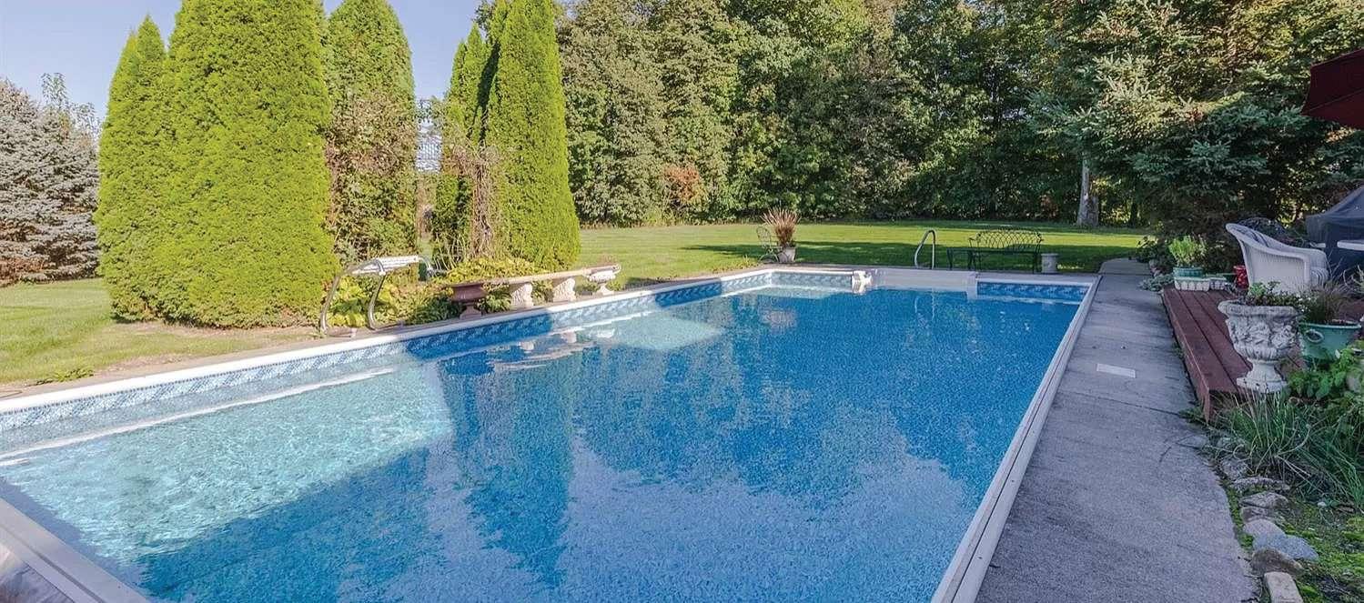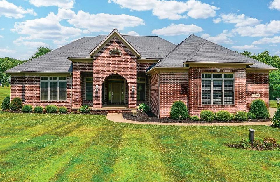This stunning custom-built home by Randy Elpers offers 4 bedrooms and 3 full/3 half bathrooms, perfectly situated on over three acres of lush, meticulously maintained landscape, creating an inviting curb appeal with its beautiful architectural details. Upon entering, you’re welcomed into a grand two-story foyer that immediately sets an elegant tone, complemented by oak hardwood floors and dentil-style crown molding that extend throughout most of the main floor. Adjacent to the foyer, a well-appointed home office features built-in desks and bookshelves, while to the left, the formal dining room boasts large windows and elegant wainscotting detail. The living room impresses with a striking coffered ceiling, a cozy fireplace, and built-in bookshelves, creating a warm, inviting space. The updated, eat-in kitchen boasts new countertops, abundant cabinetry, a spacious island, a walk-in pantry, a built-in desk, casual dining area, and a convenient butler pantry. Adjacent to the kitchen, the family room features a second fireplace, soaring ceilings, and nearly wall-to-wall windows. Completing the main level, the spacious owner’s suite boasts large windows, dual closets, and a luxurious en suite bathroom equipped with dual vanities, a jetted tub, and a walk-in shower. Upstairs are the additional bedrooms, each featuring walk-in closets; one includes its own en suite bathroom, while two share a convenient Jack & Jill bath. The basement serves as a versatile recreation area, featuring a large rec room, a great room with a third fireplace, a wet bar, and a full bath, along with ample unfinished storage and a dedicated home gym space. The backyard is a serene private oasis, offering relaxation by a heated pool amid lush greenery and landscaping, while the pool house, equipped with a kitchenette and bathroom, provides effortless outdoor entertaining and comfort. A detached building provides convenient outdoor storage, making it easy to store equipment, tools, and outdoor essentials. This beautifully maintained home offers all the modern amenities and thoughtful updates, ready for you to move in and make it your own.
