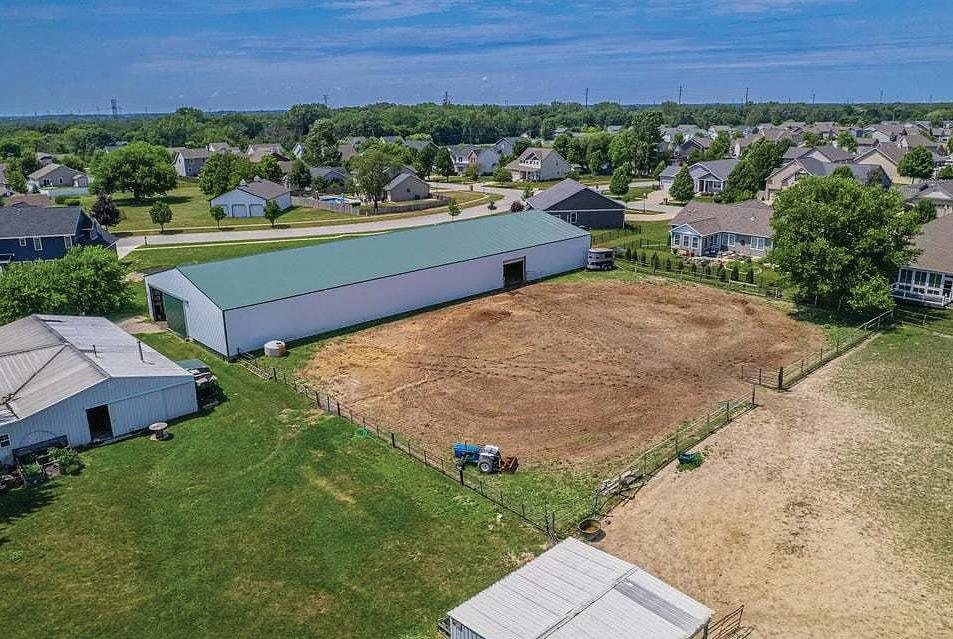 Horse enthusiasts, land lovers, and investors seeking income potential—this property truly offers it all. A fully equipped horse farm with fenced pastures, a serene pond, and heated stables featuring 14 stalls. In 2021, a 160x60 ft. arena was added, complete with five (10x10) stalls, one (10x20) stall, a tack room, and a hay stall. The front barn includes seven (10x10) stalls, two (10x20) stalls, a tack room, hay stall, shower stall, and half bath. The second garage features convenient pull-through doors—perfect for a car, truck, or boat. The all-brick ranch offers 3 bedrooms on the main level (with potential for more in the finished basement). The kitchen opens to the family room, and all appliances stay. Enjoy a 3-season room, a front living room with fireplace, a private master bath, and a laundry area with a new pantry. The finished basement expands your living space with a second kitchen, full bath, living area, media room, and two additional rooms (ideal for bedrooms or offices), plus new flooring throughout. A long driveway welcomes you through a beautiful entrance, leading to a property that blends charm, function, and opportunity. Currently operated as a horse boarding facility, it offers fenced pastures and ample open land. Both barns are fully functional and easily adaptable for a variety of uses. Numerous updates have been completed—please ask for the list of extra items seller has done if interested. If you love horses, crave open space, or want a property with strong income potential, this one is a must-see!