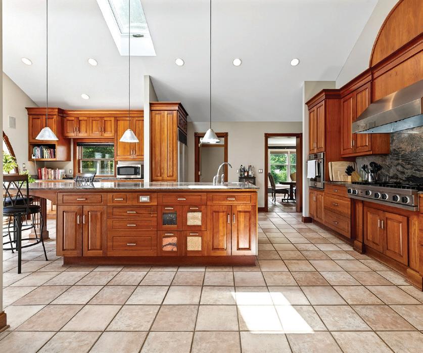 At the heart of the home, a cathedral-trussed kitchen opens to a hearth room, scullery, and sunlit solarium. Upstairs, three bedrooms accompany a spectacular owner’s suite designed as a private retreat, complete with 18-foot cathedral ceilings, herringbone floors, a floor-to-ceiling stone fireplace, and a spa-inspired bath with oversized wet room, soaking tub, and dual vanities.