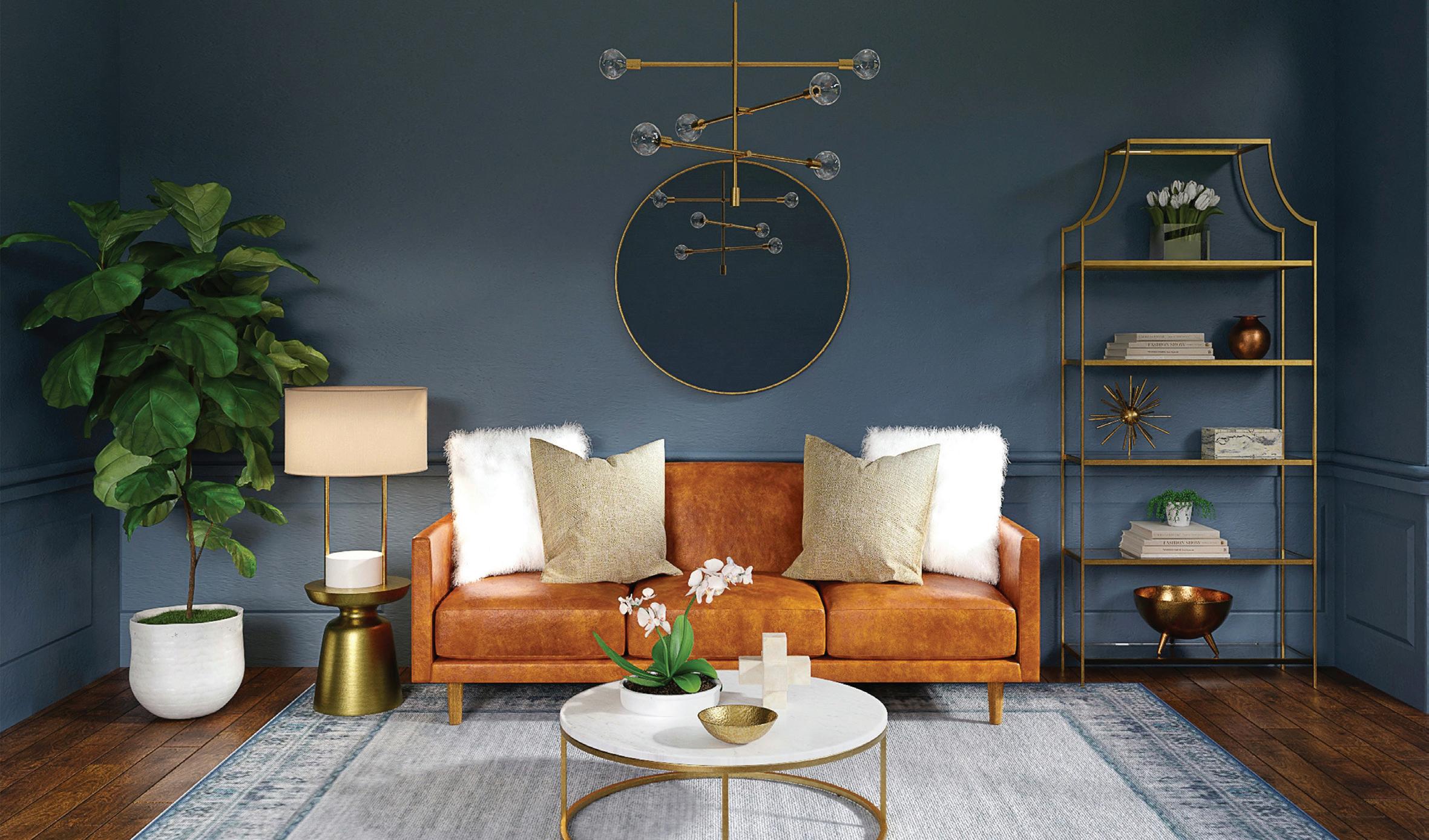 Artefacto’s collections demonstrate the power of warm metallics, featuring accents that elevate everyday furnishings into statement pieces. A brass-legged dining table or a brushed gold coffee table introduces warmth and richness into a room. Metallics can also be incorporated through accessories such as vases, lamps, and hardware. The benefits of warm metallics extend beyond their aesthetic appeal. These finishes complement a range of colors and materials, from natural wood to vibrant jewel tones, making them adaptable to any interior palette. Imagine a kitchen with copper pendant lights reflecting the glow of Cinnamon Slate-painted walls or a bathroom with a brassframed mirror paired with marble surfaces. These elements create an environment of understated luxury and refinement.