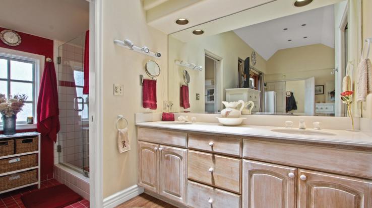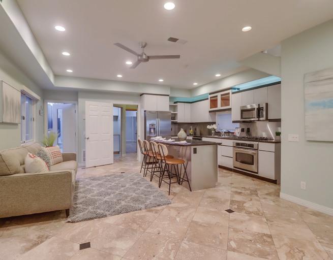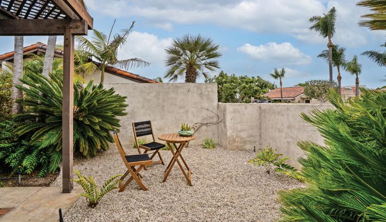 and a beautifully updated full bath with double vanity and pebble-tile flooring complete the main level. Each room offers French door access to the large private patio, perfect for morning coffee or alfresco dining. Upstairs, the luxurious primary suite is a serene retreat with its own private balcony, a spacious walk-in closet, and a spa-inspired ensuite bath featuring a double vanity, skylight, and walk-in shower with designer tile and glass enclosure. Additional highlights include an attached 2-car garage with built-in storage and new garage door (30-year warranty), lowmaintenance artificial turf in front, and a private outdoor shower—perfect after a beach day. Located just a short walk from the beach, pier, and top dining, this home offers the ultimate in Southern California coastal living.