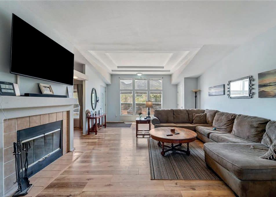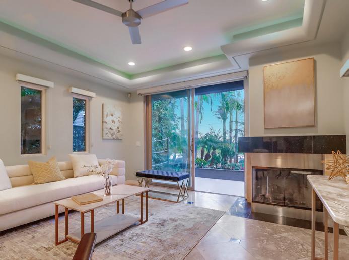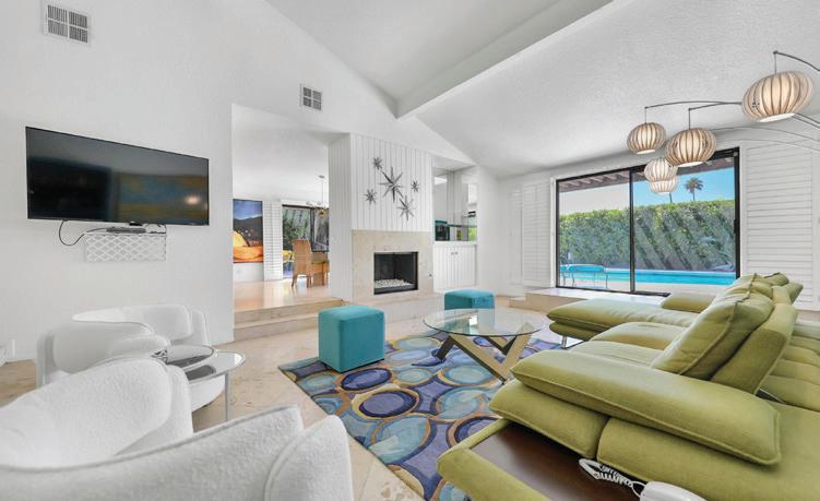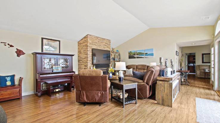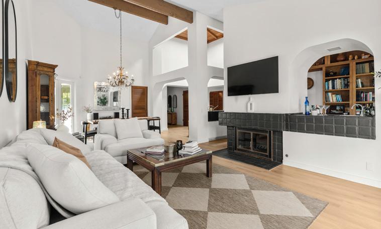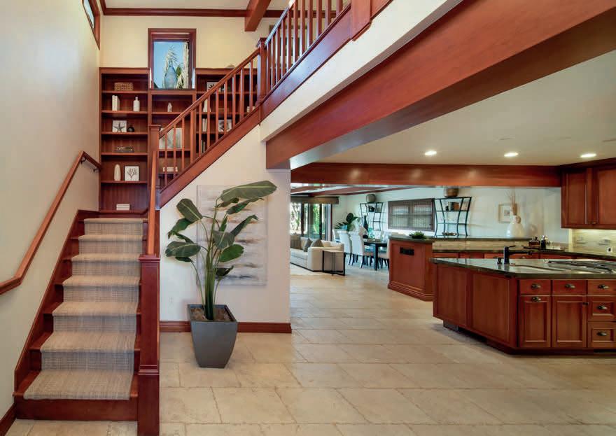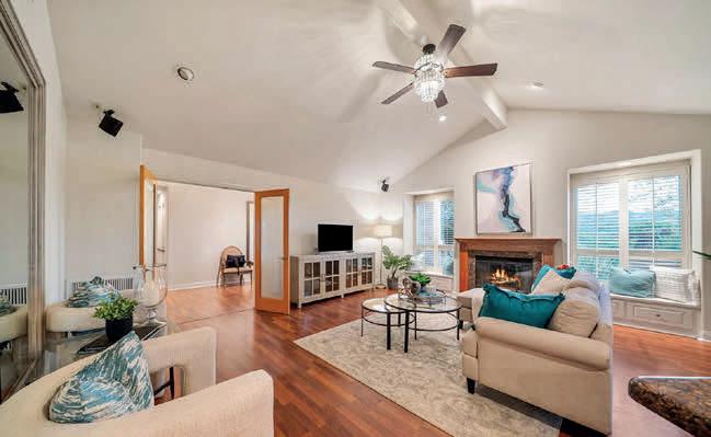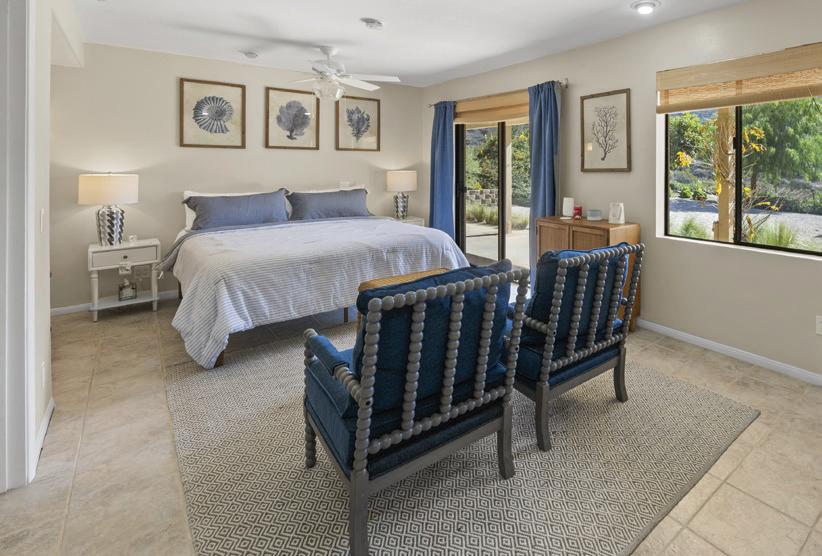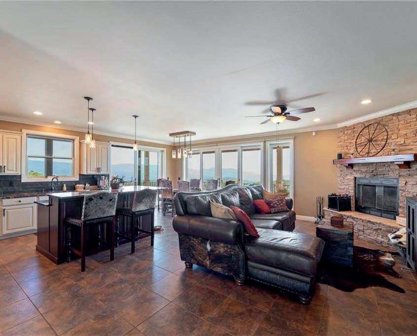 T he adjacent dining area opens to a sliding door leading to the side yard, while the inviting family room, complete with a cozy fireplace, extends onto a full-length veranda balcony perfect for enjoying the breathtaking hillside views. Designer ceiling fans adorn every room, ensuring comfort year-round.