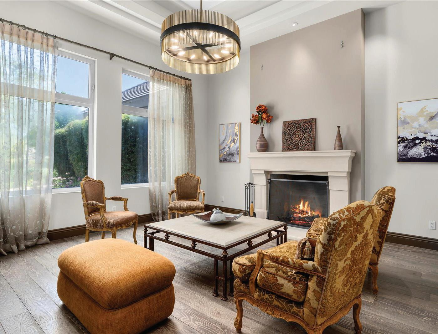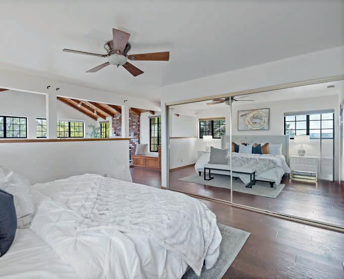 Upstairs, the master loft retreat is a sanctuary of its own , complete with a cozy fireplace and panoramic views of the San Gabriel Valley city lights.