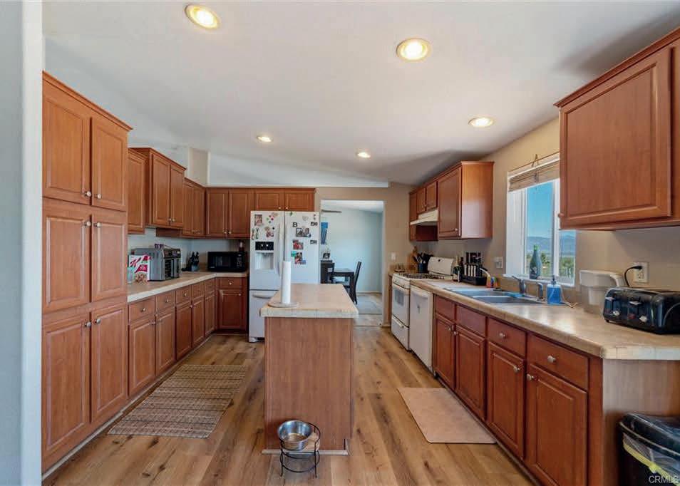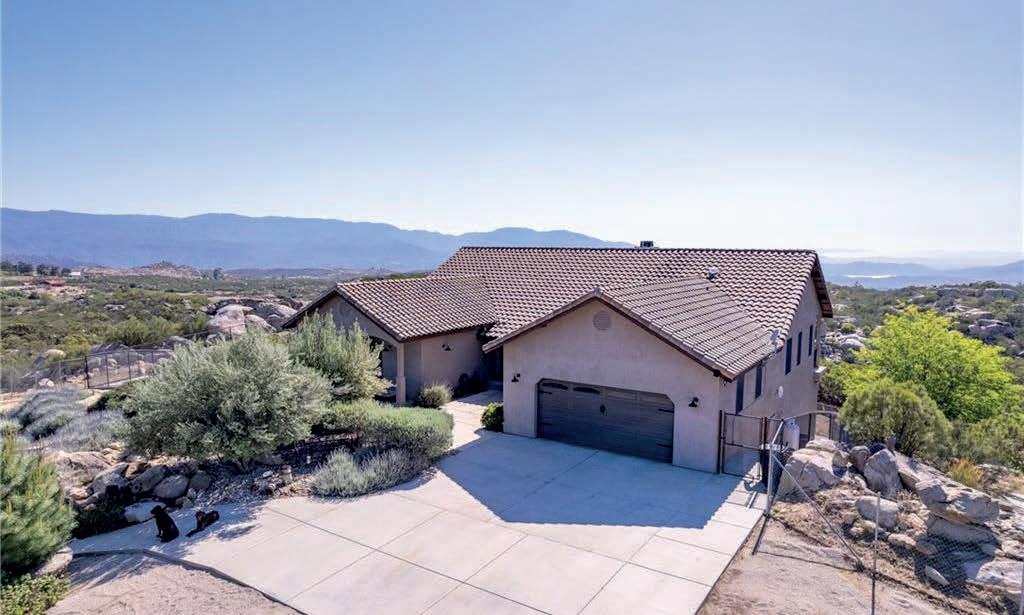 and family room separated by a double-sided fireplace. There is a large kitchen with great view from kitchen sink and center island. There is an enormous master suite, and the bedrooms of the home are mostly separated from each other. There is wonderful views of multiple mountain ranges. You will love the Generac whole house generator. There is a multipurpose outbuilding could be used as carport, animal shelter, workshop or storage. There are multiple cross fenced areas, and the property has electric gate entry. Come take a look at this great Anza property today!