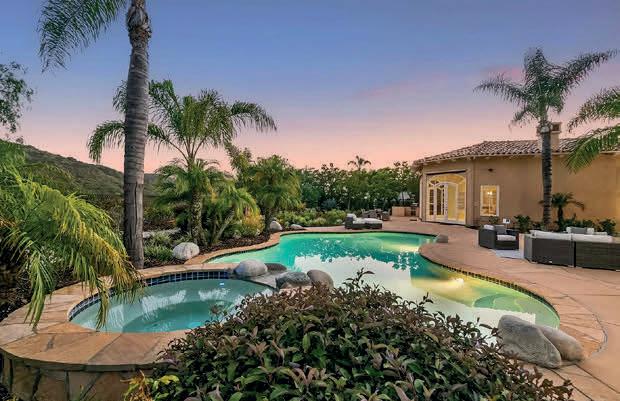 Welcome to Aguacate Ranch-A rare opportunity in this gated community of North County. Discover this immaculate 4,600 sq ft executive estate perched on 2.37 acres of usable land in the prestigious gated community of Aguacate Ranch. Nestled among serene canyon views, this beautifully maintained home offers elegance, privacy and endless possibilities. Step inside to a light-filled, open floor plan featuring hardwood flooring and expansive windows that frame the scenic surroundings and back yard. The chef’s kitchen is equipped w/stainless steel appliances, a butlers pantry and a walk in pantry. Private dining room, living room and downstairs den/bedroom with an en-suite bath. The Spacious upstairs primary suite includes 2 luxurious walk-in closets, while two secondary bedrooms each feature en-suite baths, along with a 600 sq ft game room/loft with fireplace, space for a media room, home gym or playroom. Outside the 2.37 acre lot includes numerous avocado trees, a beautiful entertainers back yard w/a huge pool, BBQ, Fireplace and room for an ADU, sport court or just privacy. The possibilities are truly endless.