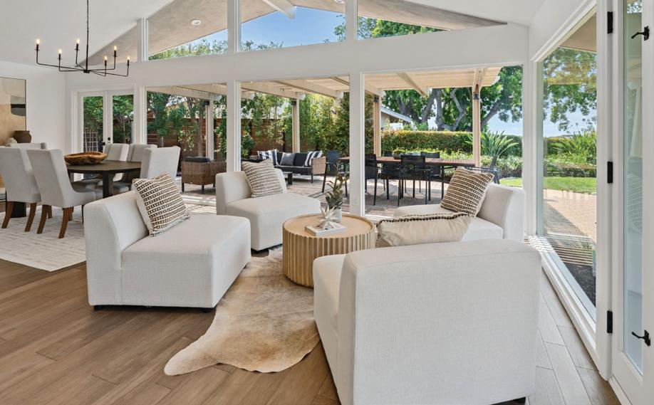 Stunning Fully Renovated Single-Story Corner Lot Home with Designer Touches Throughout Welcome to this brand-new, meticulously renovated single-story home, ideally situated on a spacious corner lot. From the moment you step inside, you’ll be captivated by soaring wood-vaulted ceilings, an elegant updated chandelier, and wide-plank engineered hardwood flooring that flows seamlessly throughout. The grand entrance leads into a warm and inviting family room, perfectly positioned with direct access to your own private oasis—complete with a sparkling pool and relaxing jacuzzi. The expansive primary wing is a luxurious retreat, featuring an executive office, a tranquil atrium, and an impressive 1,000 sq ft primary suite. The spa-inspired primary bathroom boasts dual-head showers, his-and-hers vanities, dual walk-in closets, and a freestanding tub beneath a stunning overhead light fixture and vaulted wood ceiling.
