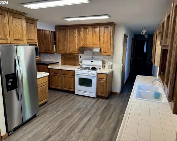 Detached Home, NO HOA. Charming Bright Corner lot Home has extra windows letting in lots of natural light that you will Love along with a Private Old World Cobbled Drive-up. This Sunny & Bright 3 level home is Well kept in Great condition. Kitchen cabinets refinished with newer doors plus a Brand New Range. Both Bedrooms have large Walk-in Closets. Total 2 1/2 Baths! Carpets have been replaced with Beautiful Vinyl Plank Flooring (Except Staircases for quiet). Tons of Storage with Huge Closets & Double Extra Deep Garage to park two cars in. Locked Private fully Fenced yard and covered clean Patio. Nice neighborhood & Great Schools, Clackamas Town Center & Mall 205 and all levels of Eateries.