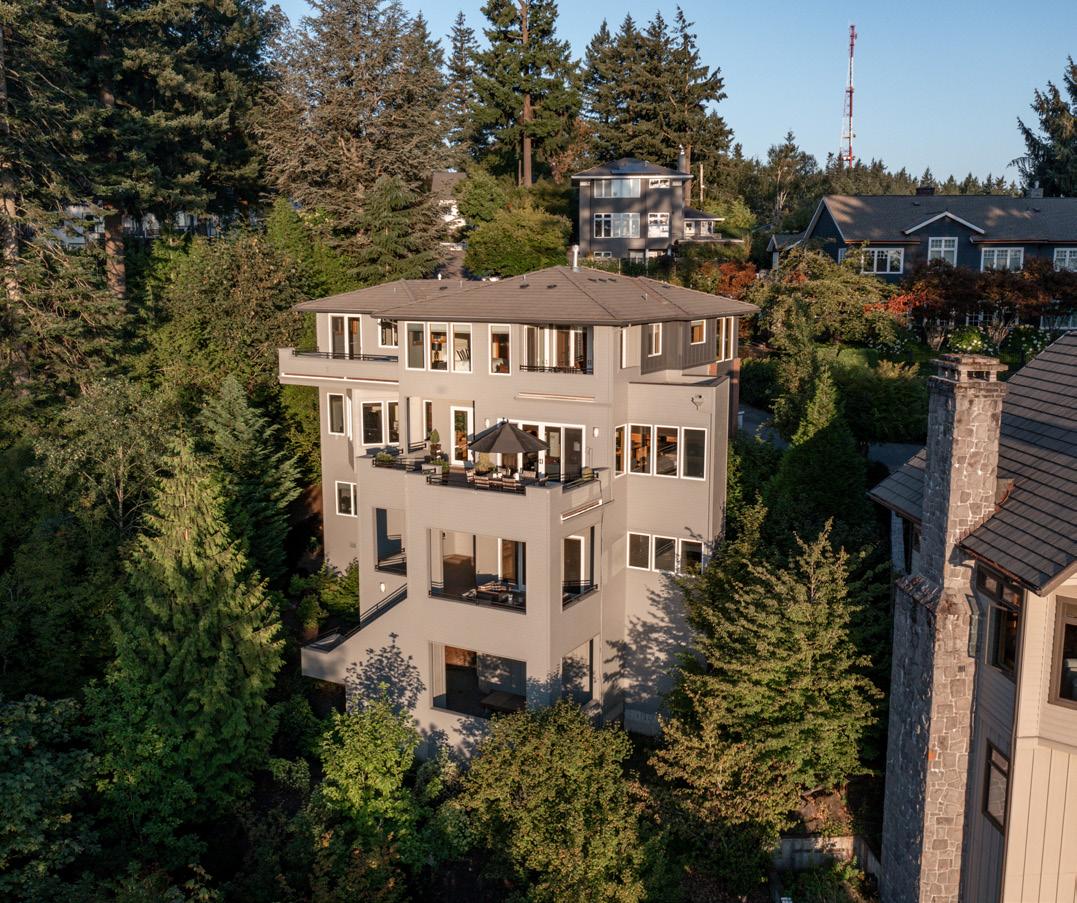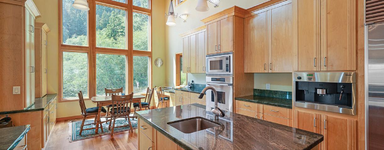 If you love nature, own a stellar art collection, or have an affinity for open floor plans & sleek lines, then you will love this unique modern home embraced by the surrounding forest with views as far as the eye can see. Every corner of the home is thoughtfully curated, delighting the senses with its seamless design and meticulous attention to detail. A sleek minimalist aesthetic ensures timeless appeal. The main living area features soaring ceilings, a cozy fireplace, floor-to-ceiling windows that showcase breathtaking views of the forest & valley. The open-concept great room flows into a gourmet kitchen outfitted with high-end appliances, including a 60-inch Wolf Dual Fuel Range w/double ovens, Jenn Air appliances: freezerless fridge, dishwasher & microwave drawer. European-style custom cabinetry and an extra-large island make the kitchen perfect for entertaining. The kitchen walls are smooth & glossy traditional Moroccan finish – Tadelakt. A wet bar w/under-counter fridge, ice maker, & Jenn Air built-in coffee maker for freshground coffee or instant hot water anytime. An open-riser staircase leads to the Primary Suite, where you feel as though you’re floating above the treetops with stunning views. The suite includes an oversized closet area with an in-suite washer and dryer, and a luxurious en-suite bathroom featuring a glass-enclosed shower and a 72-inch Native Stone soaking tub with floorto-ceiling windows. The main-level bedroom is well-appointed, providing comfort and privacy for family members or guests. There is also the option to create a third bedroom by adding a wall and door to the flex space currently used as a dining area.