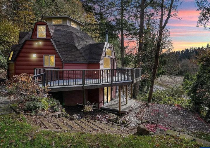 Nestled along the serene Sandy River, first time on the market, this 4,000 square-foot sanctuary designed by renowned home designer Mike Barclay, harmoniously blends nature with modern living. Bathed in natural light from expansive windows and skylights, the open floor plan seamlessly connects the living, dining and kitchen areas creating an ideal setting for intimate family gatherings or grand entertaining. Set on nearly three acres with mature trees, the property offers picturesque, park-like surroundings. This comfortable home features three bedrooms, 3.5 baths, two conveniently located laundry rooms, and year-round comfort with dual furnaces and air conditioning. Despite its private environs, the home is conveniently located near Portland, PDX Airport, East County Pickleball Courts (Oregon’s largest indoor Pickleball facility), Multnomah Falls and Troutdale, offering the perfect blend of seclusion and accessibility. A hidden 700-bottle wine cellar invites wine enthusiasts to savor a glass by the river while the oversized three-car garage offers ample parking and storage. This home is a statement of refined living, perfectly balancing privacy, luxury, and urban convenience.