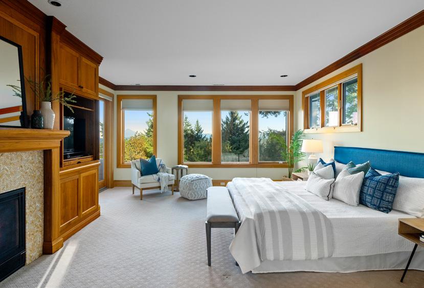 Experience elevated living in this exquisite home, perfectly situated in Council Crest, offering captivating east views of sunrises and twilights reflecting the city. The primary suite serves as a true sanctuary, featuring views of Mount Hood, a cozy fireplace, and a spa-like bathroom with a sauna, steam shower, soaking tub, spacious dressing room, two vani- ties, and two private commodes. The stately den, adorned with beamed ceilings, boasts a wet bar and a charming view balcony. Meticulously updated in 2024, this home exudes freshness throughout. The lower level is an entertainer’s dream, with three additional bedrooms, including a spacious ensuite, and a large family room with a kitchenette and eating bar. A wine cellar and fireplace enhance the ambiance. Step outside onto the covered deck for seamless indoor-outdoor living. Entertain in style in the formal living room with a piano nook, or gather in the expansive great room and kitchen that opens to a large back deck—ideal for alfresco dining. Don’t miss this opportunity to own a beautifully crafted home near trailheads, OHSU, downtown, and parks. *All furnished rooms are virtually staged.