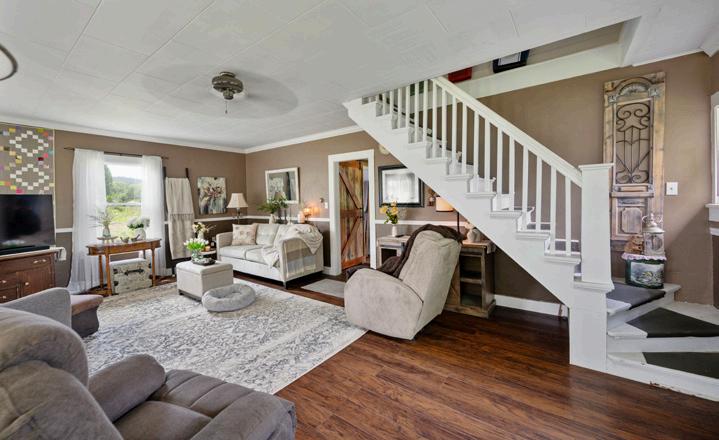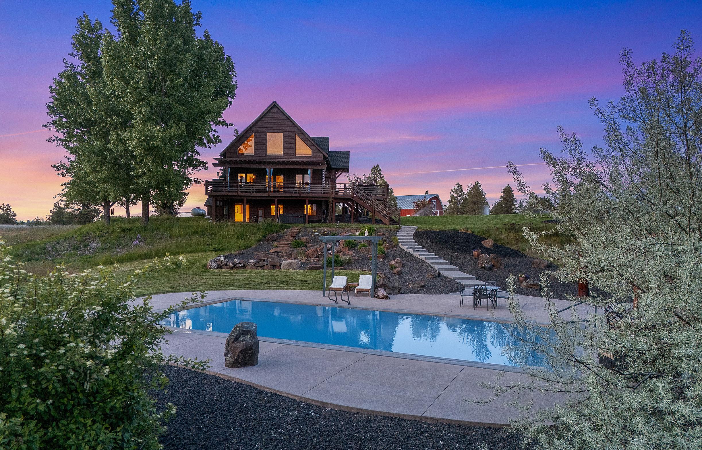 Your Yellowstone-inspired estate awaits—34 private acres of rolling hills, lush pastures, and refined rustic elegance. This 3,600+ sq ft retreat features wood finishes, open-concept living, and main-level utilities for ultimate convenience. The gourmet kitchen offers high-end appliances, custom cabinetry, and a seamless flow for entertaining. The main-level primary suite is a true haven with heated floors, spa bath, step-in shower, garden tub, dual closets, a sitting room, and private balcony. Step outside to enjoy the in-ground pool, pool house, and sauna—perfect for relaxation or gatherings. The land includes 20 acres of cross-fenced pasture, a barn with loafing shed, fruit trees, mature gardens, and a garden shed. Only 7 minutes to the grocery store, this legacy property offers the rare blend of privacy, luxury, and connection to nature.