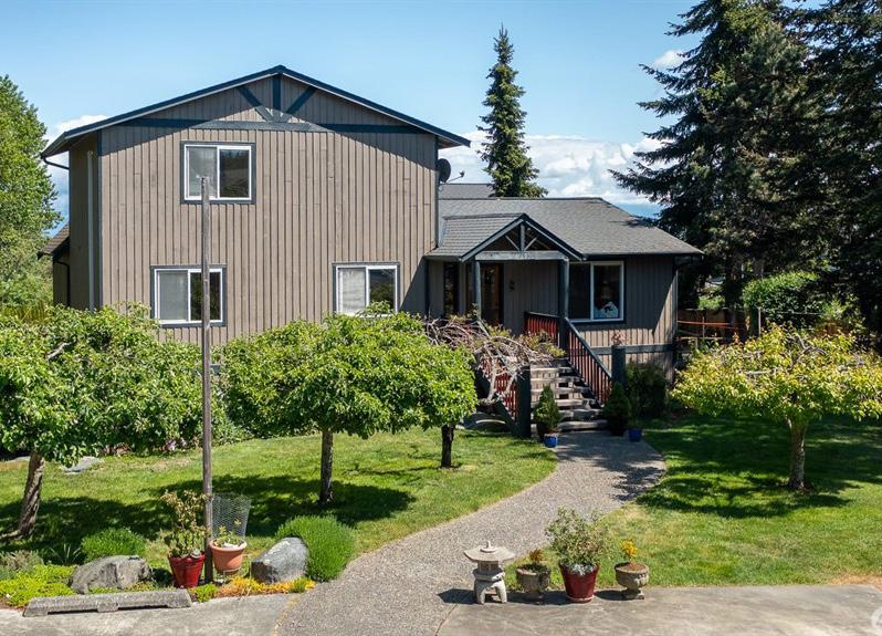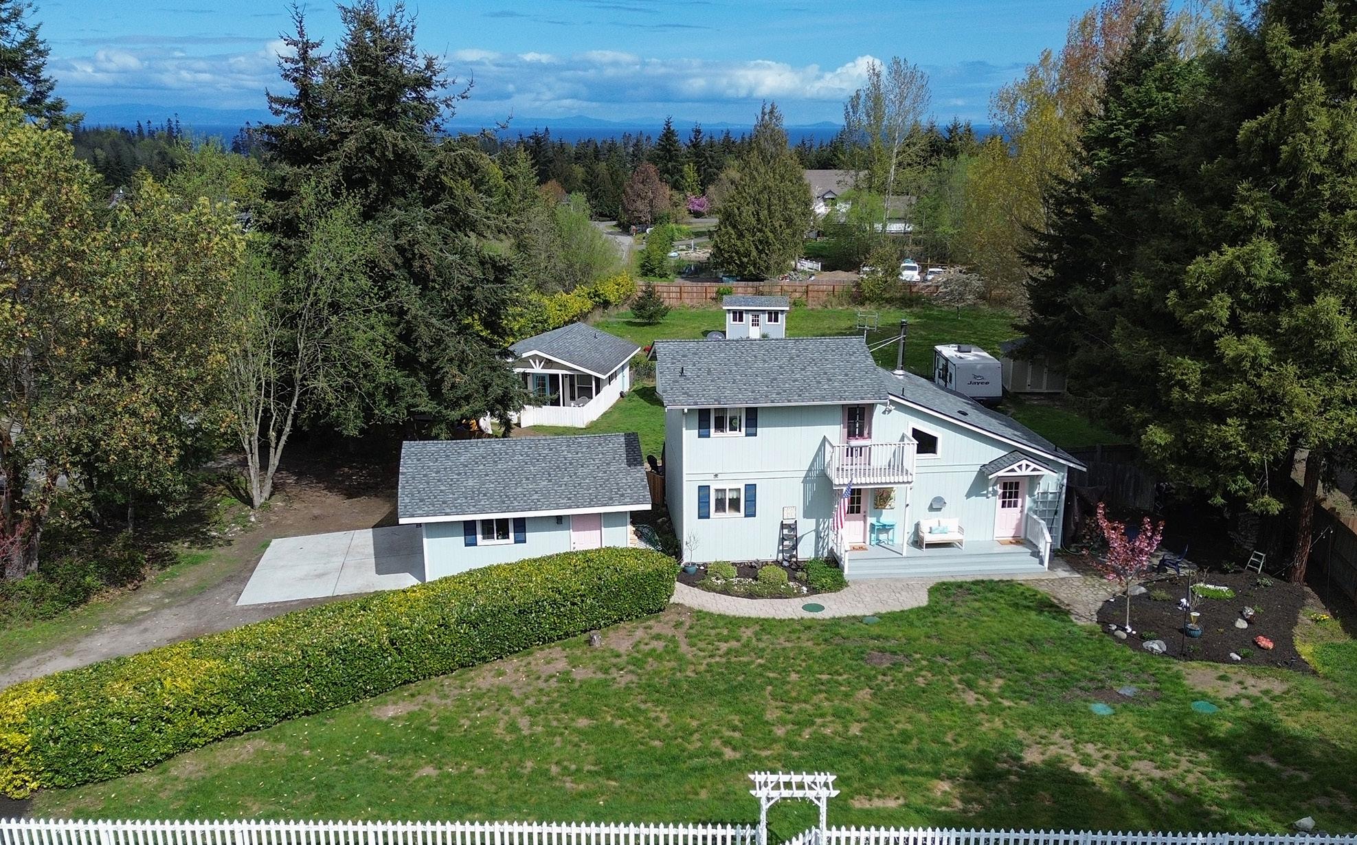 A place to hang your heart: main house has 1492 sq ft with 3 BR & 2 BA, view of the Olympic Mountains, & peeka-boo water view from the back deck. Additional 400 sq ft in the detached cottage which has a kitchenette, wall of bookcases, fenced front patio. The cottage is perfect for a hobby room, scrapbooking room, artist studio, library, I want to hang out by myself room! Your first impression will be “cute”, “charming”, “enchanting”! The living room has a vaulted ceiling and a cozy freestanding wood stove & the sun-filled family room is equally delightful. The all white kitchen has a farm sink & new refrigerator & microwave with adjoining dining area. The solid surface flooring makes it easy care. It is located on an acre with a two-car garage, fire pit, 3 sheds, room to park an RV, & fenced backyard - great for pets. Convenient to both Sequim and Port Angeles. Don’t want to move your furniture - furniture is available for purchase!