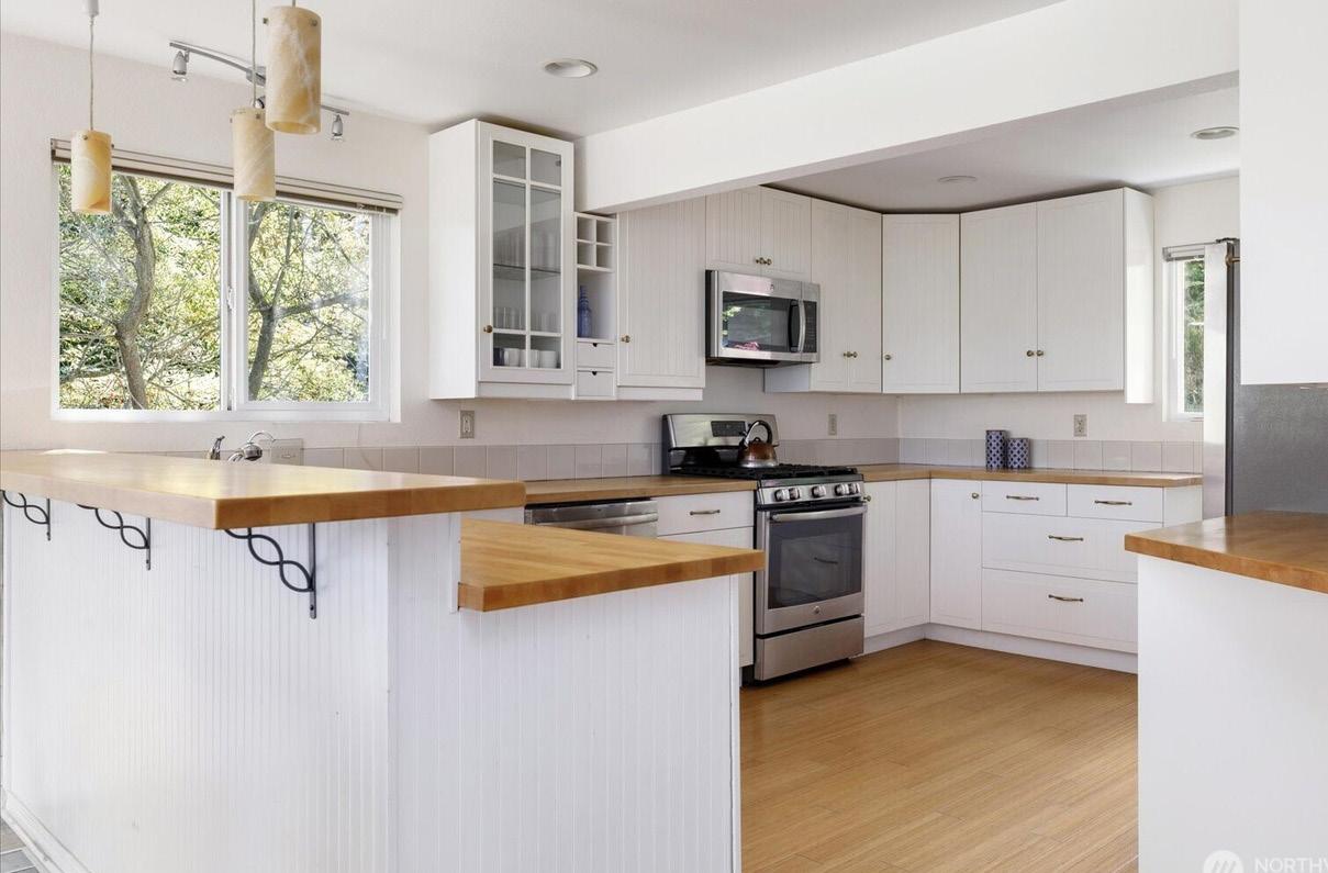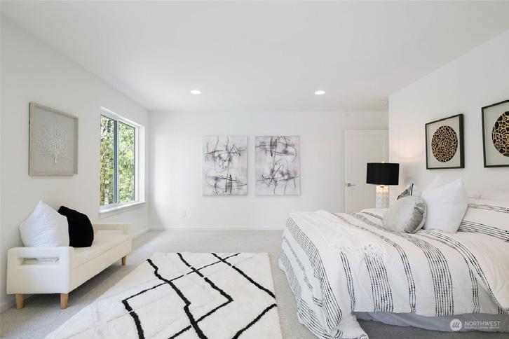 MLS 2391455 | $2,450,000 Modern sophistication meets timeless design in this stunning 5-bedroom, 4-bath Northwest contemporary nestled in the desirable Holmes Point / Denny Park community. Set at the end of a peaceful lane and surrounded by natural beauty, this home offers the perfect blend of comfort, functionality, and high-end finishes. The main floor welcomes you with a spacious home office, an expansive great room ideal for entertaining, both formal and casual dining areas that flow effortlessly for everyday living and a covered balcony for year-round outdoor living. The large gourmet kitchen features quartz countertops, an oversized island with seating, stainless steel appliances, and a walk-in pantry for ample storage. Light-filled primary suite provides a true retreat with dual walk-in closets and a luxurious five-piece bath designed with spa-like tranquility. One of the home’s standout features is the private rooftop deck—an incredible space to unwind or host, with peekaboo lake views. Located just minutes from waterfront parks, vast protected forests & trails, top-rated schools, and everyday conveniences, this home combines the best of modern living with an amazing, tranquil Eastside location. Come experience Holmes Point living at its finest!
