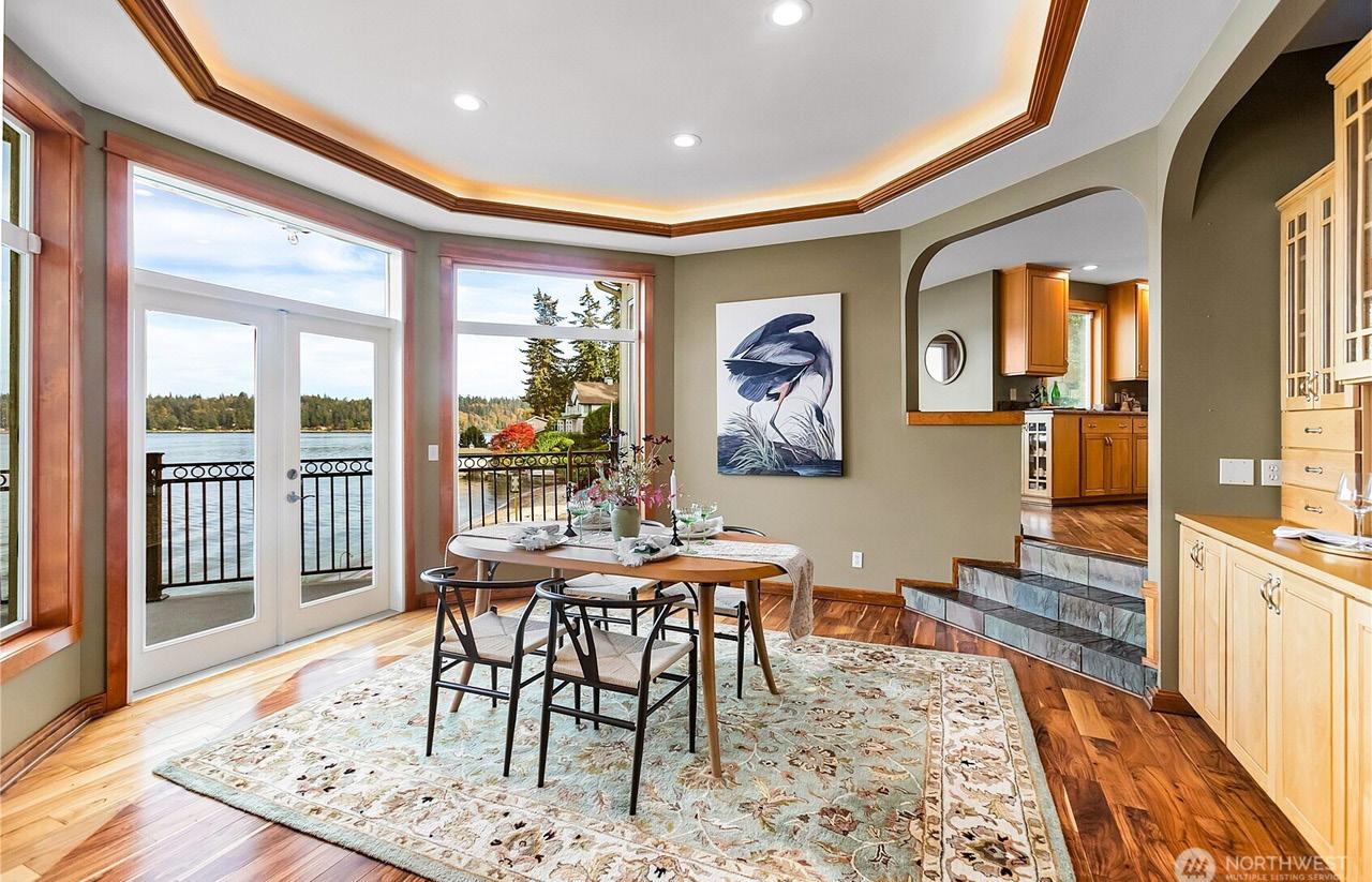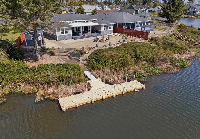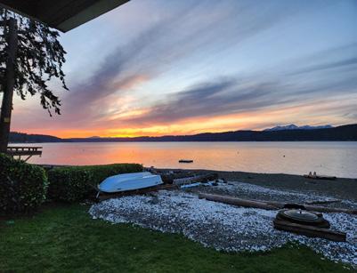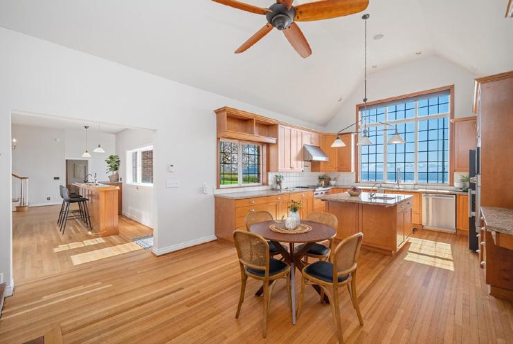 Step outside to immaculate grounds where sunrise views, curated gardens, and a sandy beach await. A private, rebuilt (2023) threeslip dock—including protected, year-round moorage—invites boating and water sports at a moment’s notice. The detached 2-car garage complements the main garage and offers potential for a guest house or studio, while ample guest parking ensures effortless hosting.