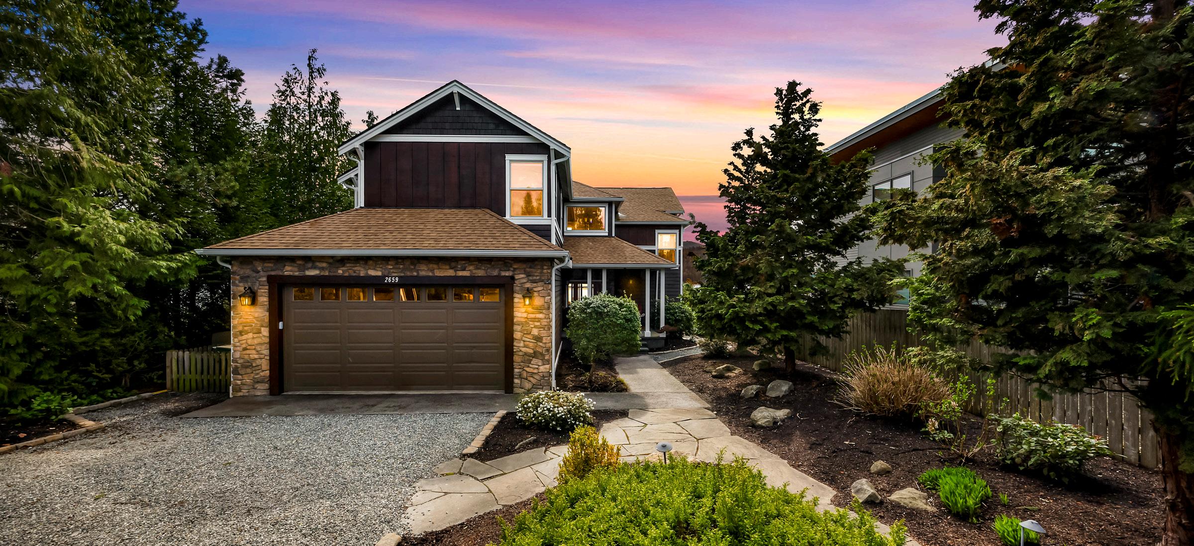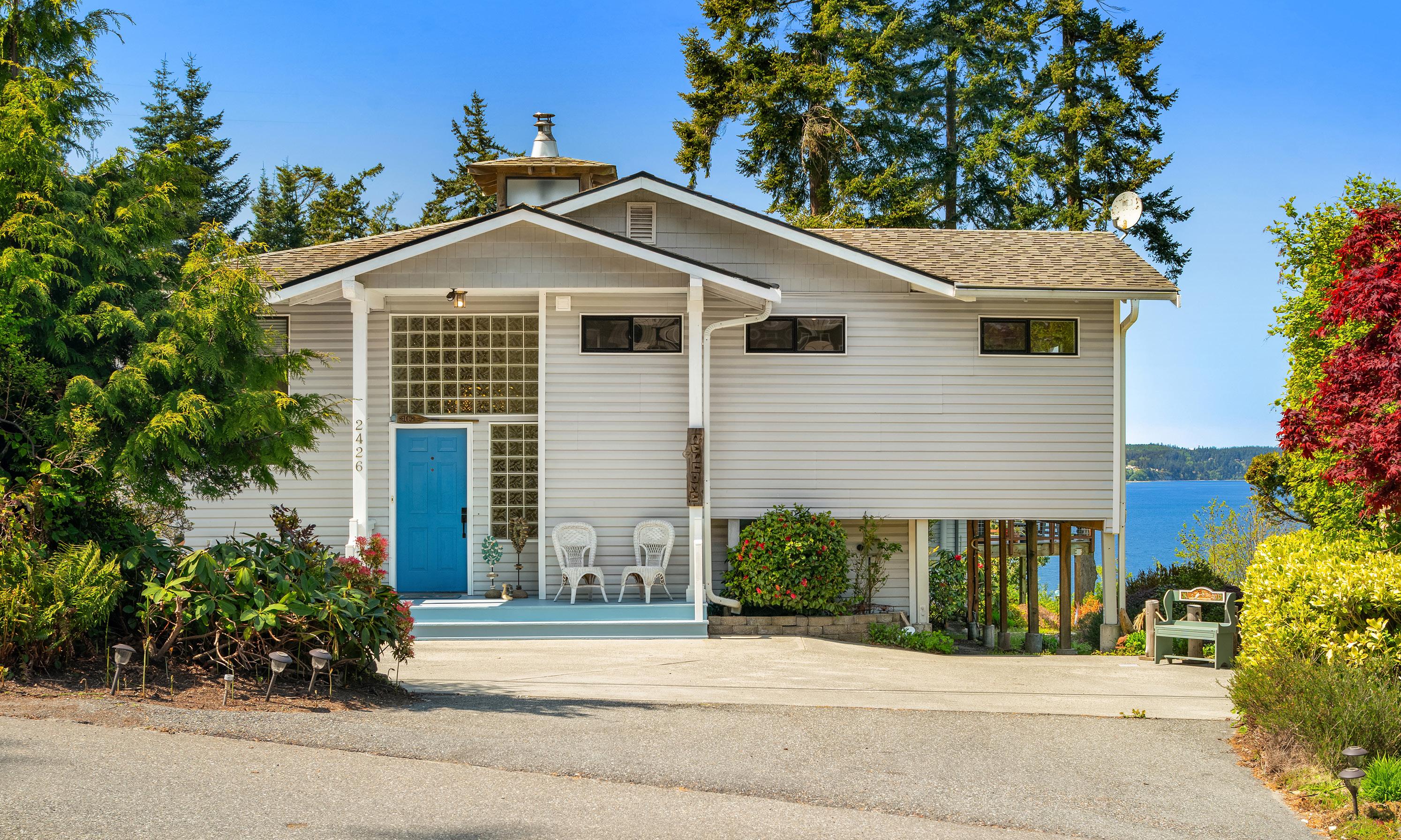 Sunset marine views, updated 3 beds/ 2 baths in a superb location near trails, lakes and cafes. Move-in ready w/newer metal roof, exterior paint, new central heat/a/c, propane fireplace, remodeled bath, new flooring. Detached 800 sq.ft. garage / shop. A real gem!