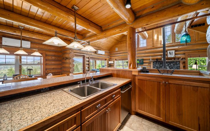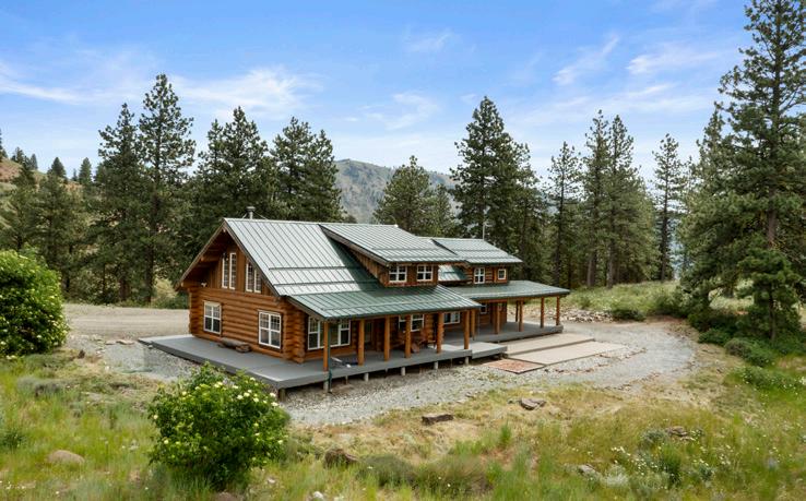 Welcome Home. Hand crafted vertical log home on 8.65 acres. View of valley of orchards, Leader Lake ½ mile from property, 20 min. to Loop Loop Ski mountain. Covered deck on 3 sides with tile flooring. Propane fireplace in living room. Main bedroom 700 sq ft, walk in closet, 16’ closet, 2 person jet tub, exterior door to backyard. Kitchen full view of valley, granite counters, table custom made to match. Downstairs “mil” conveniences, daylight, exterior door to lawn, wood stove/natural rock base. Attached 2 car garage 780 sq.ft, 400 amp electric service. Private well, approved at 50 gpm, tested to 100 gpm per min. with 5000 gal. reservoir w/gravity flow. Fire protection. New metal roof. Out buildings. Under ground sprinklers, lawn and arena.