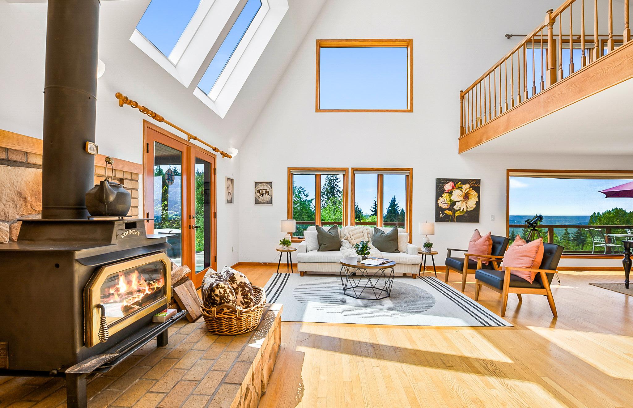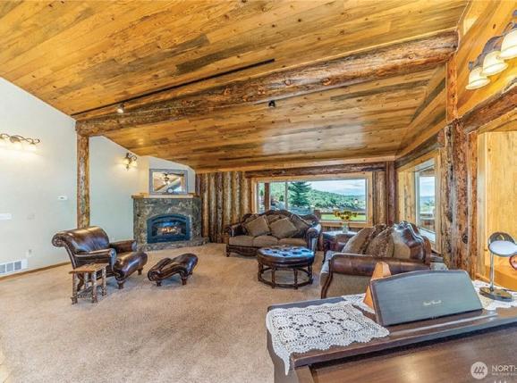 MLS 2373567 | $1,500,000 Gated, private log home with mesmerizing views sitting perched above 200+ feet of waterfront on pristine Winters Lake! Built in 2009, this custom 4,605 square foot, 3 bedroom, 3.5 bathroom home features a magnificent 2 story living room with soaring ceilings & walls of glass that frame the idyllic views of the Cascade Mountains, surrounding forests, and the peaceful lake below. Light-filled chef’s kitchen with walk-in pantry and dining room surrounded by glass doors opening to the views and deck. Spacious primary bedroom with ensuite bath and private deck. Upper level loft with family room / flex space, bedroom & ¾ bath. Vast lower level with huge views, new flooring & paint, perfect for an additional family room, recreation room, hobby enthusiasts haven, or amazing man cave! Lower level also includes a mother-in-law / guest apartment with full kitchen, bedroom, ¾ bath & separate access & deck.