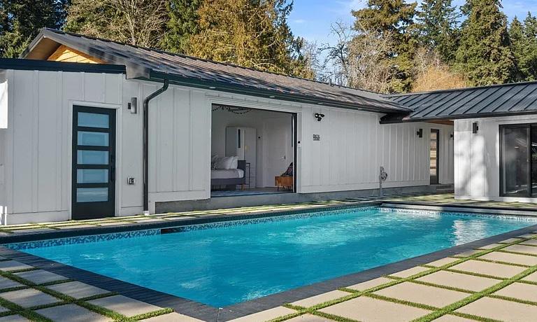 Waterfront paradise awaits you on over 400 feet of low-bank Liberty Bay with show-stopping views of Mt. Rainier and historic downtown Poulsbo. This mid-century modern, single-story estate includes a primary residence, additional second home with an additional 2-car garage, as well as a full gym, cabana guest suite, sauna and in-ground heated saltwater pool. Situated on over an acre of manicured privacy, this gated-entry property has every comfort and amenity you could dream of. Vaulted entry and primary suite; gourmet chef’s kitchen; spacious office with custom built-ins; covered outdoor living area; entertaining dock over the water; thoughtful details around every corner. Convenient access to ferries and Seattle. Detailed list of property features and current appraisal of $3,700,000 available upon request.