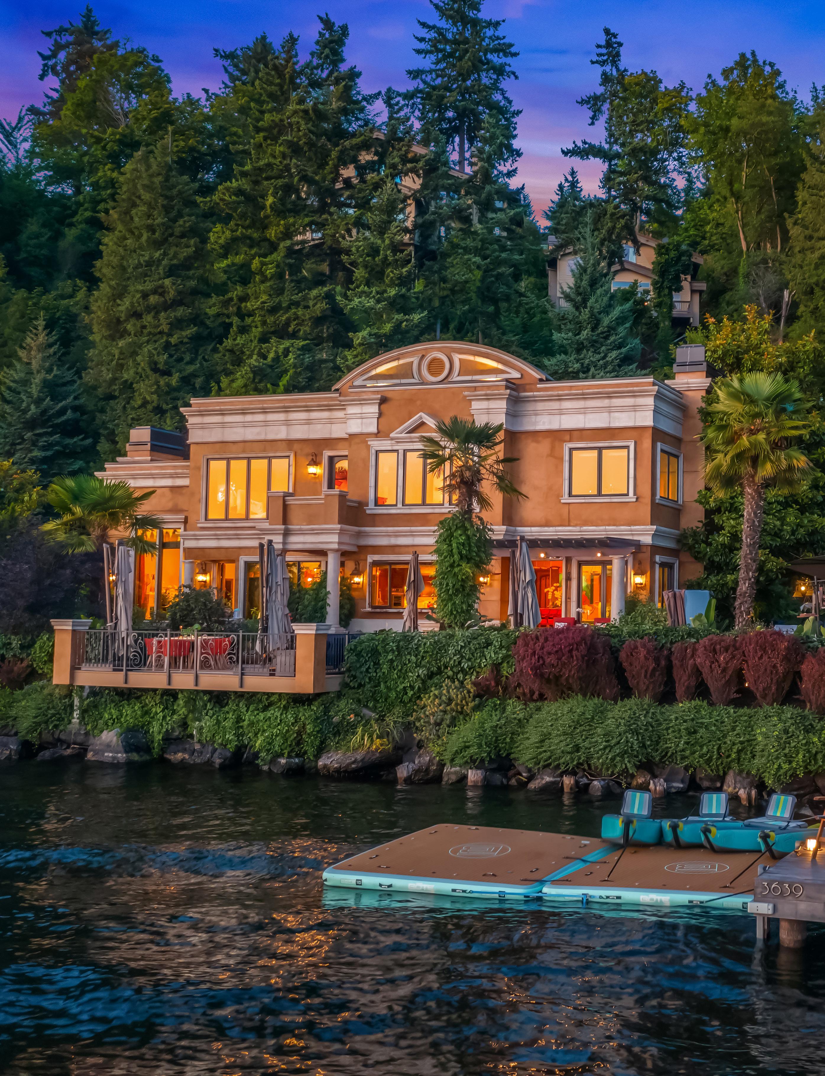 4 BD | 4,5 BA | 4,787 SqFt. | $3,980,000. Rare Waterfront Lake house in central of Lake Whatcom. One of the most recognizable residences on the north shore, a luxury and trophy home. Enjoy the low-bank private beach with unforgettable sunsets. The cove walls and Brazilian cherry floors, chef’s kitchen, 5 gas fireplaces with 1000 sqft deck and boat lift.