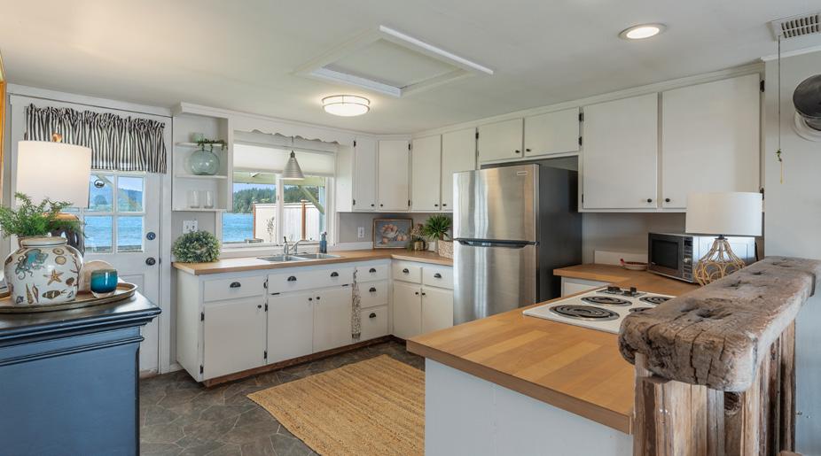 It’s planting time for the fenced-in garden with raised beds, potting bench, and garden shed in this quiet setting that comes with a 3 BR, 2 BA manufactured home with 1557 square feet with a new roof in 2023, a 900 square foot detached garage with a new roof in 2025, and a detached finished office space / artist studio. The kitchen has new cabinets and countertops and both bathrooms have been updated. The living room is cozy and the family room has a wood stove. The house has LVT flooring and carpeted bedrooms. Enjoy the brick fireplace on the private outdoor patio! There are 2+ cords of firewood for the two fire pits too! Loads of parking + RV parking. Fenced backyard is great for pets. The HOA is only $50 per year and includes community beach access. Miller Peninsula State Park is nearby - a 2,800-acre day-use park which includes a trail system for hikers, mountain bikers, and equestrians through a beautiful second-growth forest.