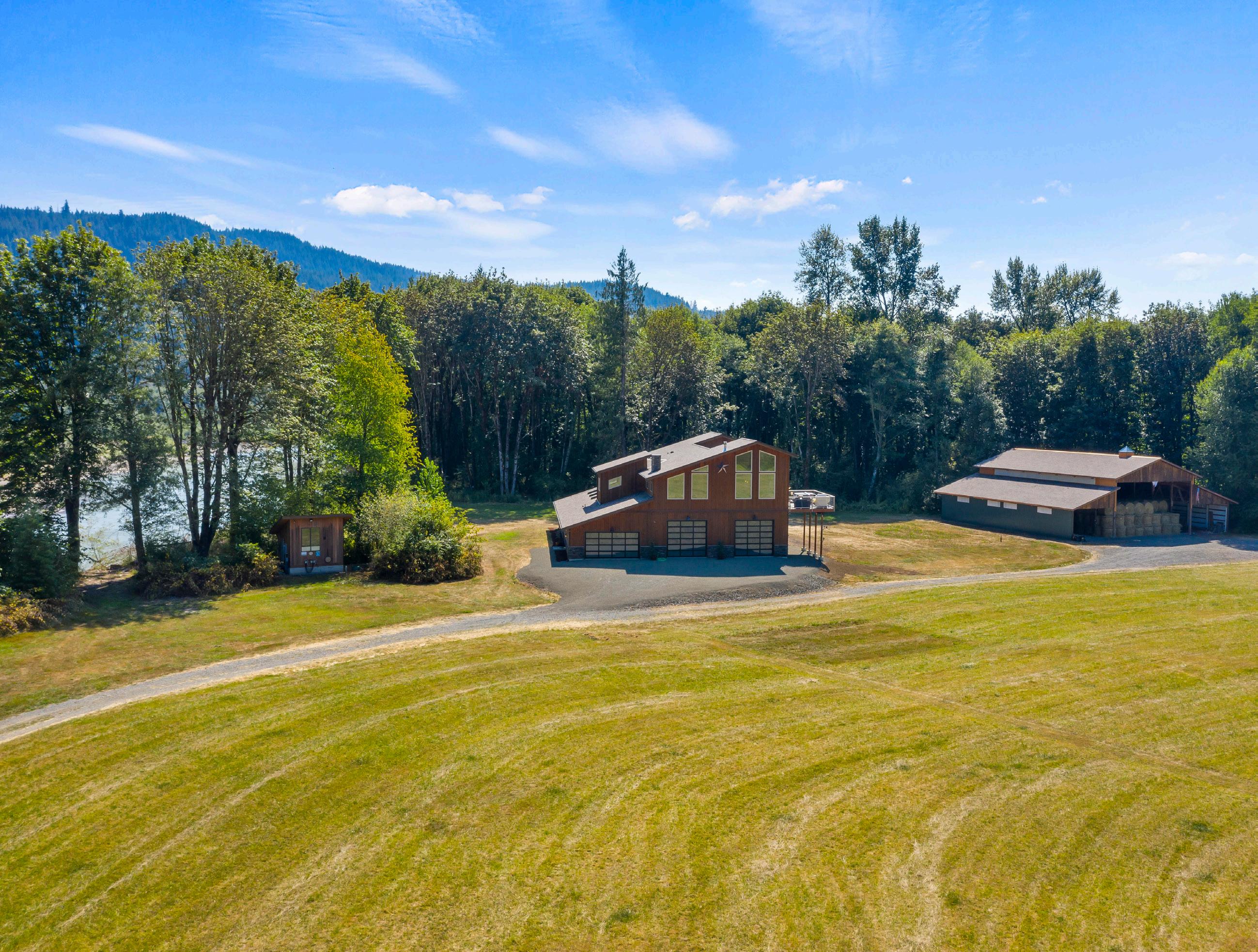 This Empire-era manor on 18.75 acres with a quarter-mile of Dungeness River frontage blends old-world craftsmanship with modern luxury. Featuring custom Honduran mahogany paneling, antique chestnut floors, and steel-timber details, the 4,797 sq ft home is both grand and cozy. A cherry-lined driveway leads to the estate with organic-certified farmland, a large ag building with a commercial kitchen, helicopter/high-bay garage, and equipment bays. The home boasts river views, a Japanese joinery walkway, luxurious interiors, a gourmet kitchen, media room, office, and expansive outdoor entertaining spaces, including a pizza oven, fire pit, pergola, and more. A rare mix of elegance, function, and natural beauty. https://vimeo.com/1080586896/ad1418a8c2?share=copy