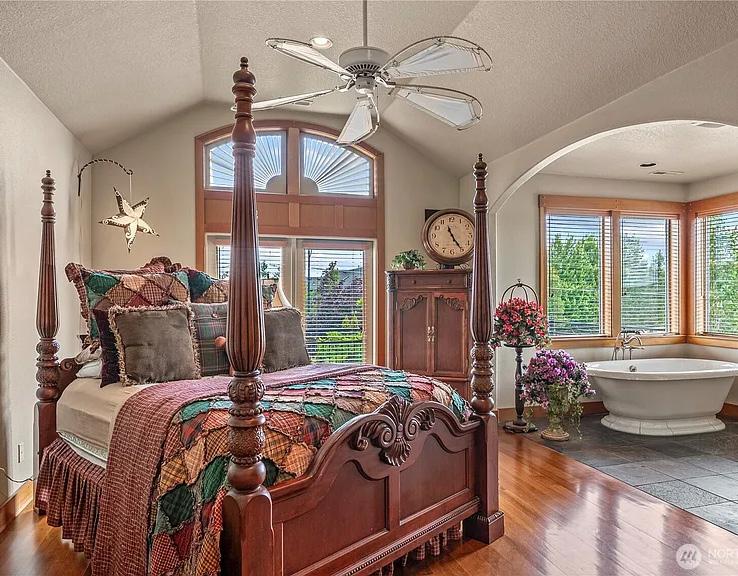 From the moment you drive up, you’ll find this gorgeous, quality built, unique home w/unexpected charm & special details that is like no other in the neighborhood. Luxurious & rich w/soaring ceilings, beautiful fixtures, 2 fireplaces, stone walls, wood floors, iron railing, arched details & grand wood beams! Open concept yet large, defined spaces. Designer kitchen w/honed granite, butler’s pantry, walk-in pantry, stone workstation & hood surround, farm sink, double ovens & pot filler. Spacious primary w/vaults, free-standing stove, private balcony, custom closet, walk-in shower, soaking tub w/Mt St Helens view! Deluxe oversized garage, stunning landscaping w/concrete walkways, in-ground hot tub/spa, outdoor kitchen, grill & 3rd fireplace!