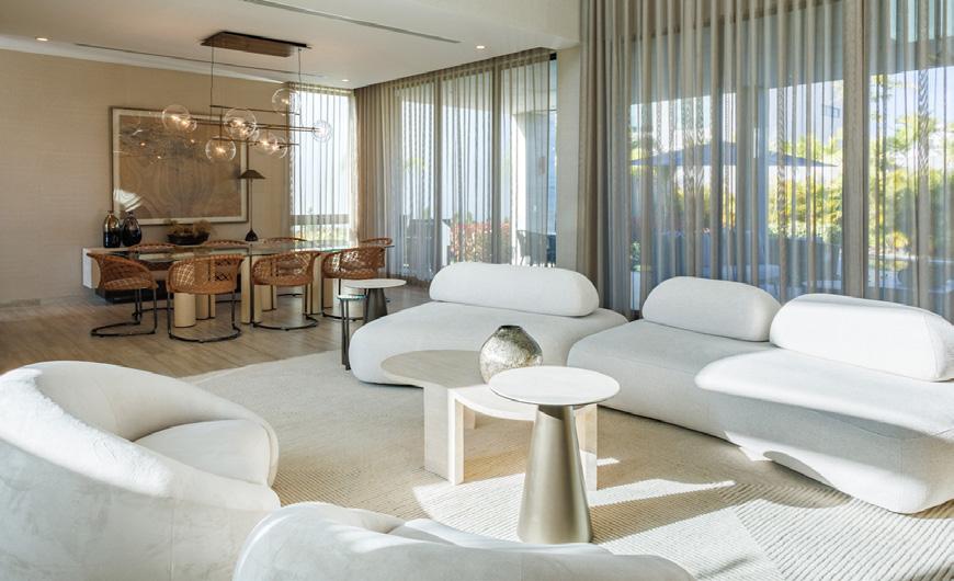 Acclaimed architecture firm M77R has created a design that captures the essence of waterfront living through its dynamic, jewellike façade and sweeping wraparound terraces. The building’s form mirrors the shimmering waters of Biscayne Bay, with expansive floorto-ceiling windows that flood the interiors with natural light and frame unobstructed water views.