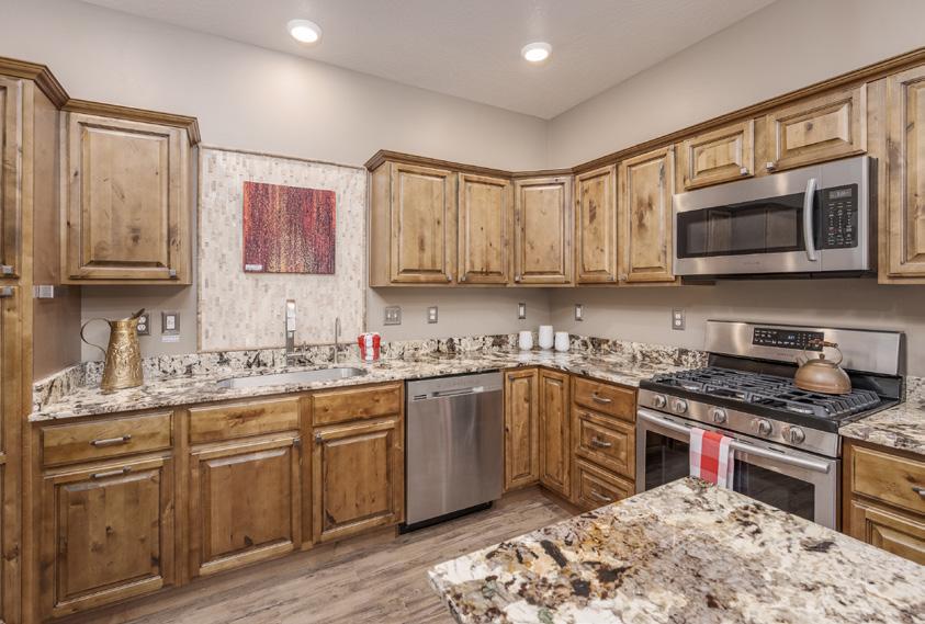 • Chef’s kitchen with high-end appliances, custom cabinetry, and granite countertops.